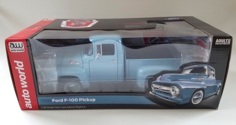 Auto World marks that moment in time with the release of its 1:18 scale 1956 Ford F-100 Pickup in Diamond Blue, the factory color that so many pickups were bathed in before leaving one of the dozen factories, including one each in Canada and Brazil, that made them.