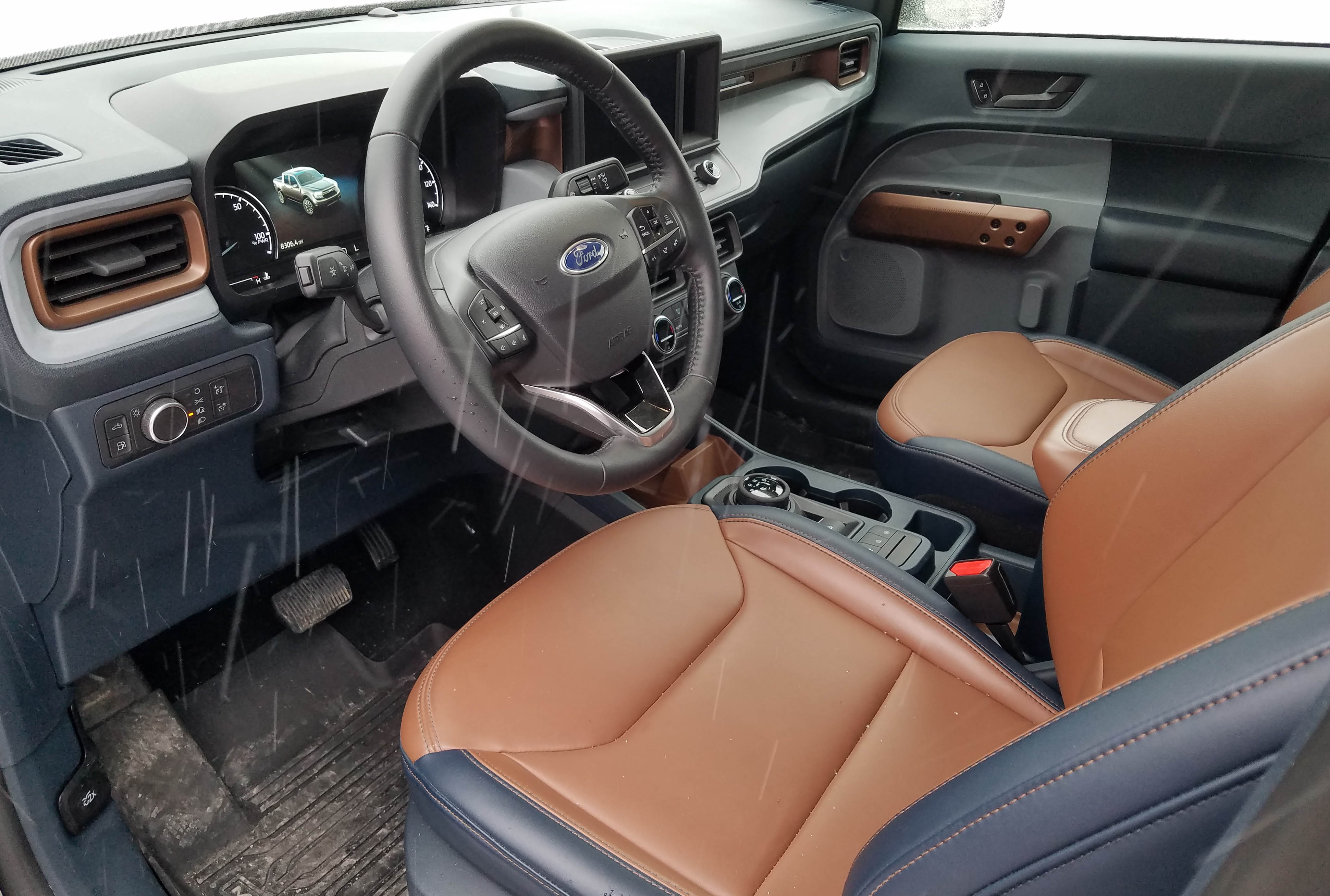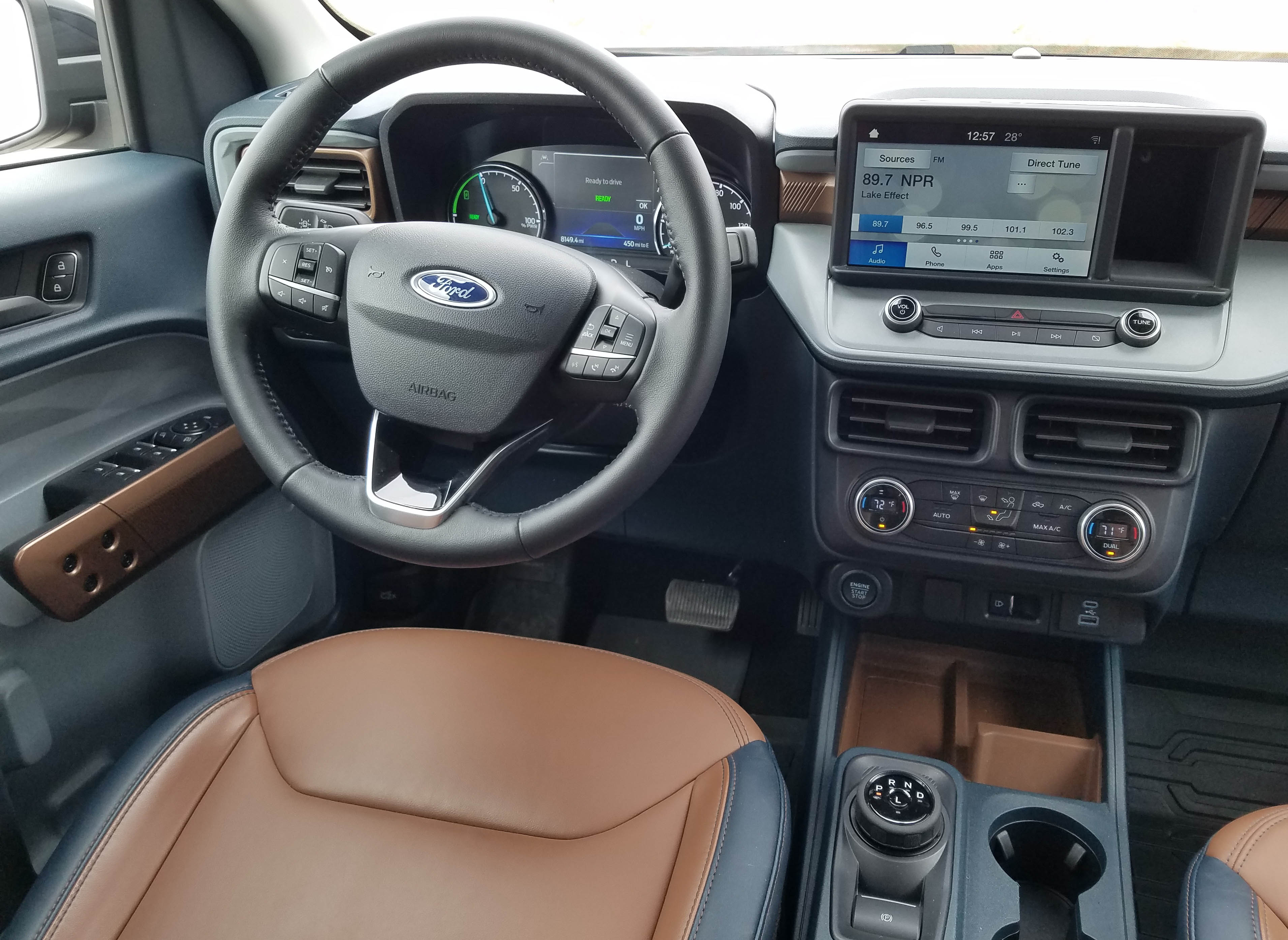 What may surprise as much as the price it that each of these trims comes standard with a hybrid powertrain. That’s right, Ford’s 2.5-liter I4 is paired with a hybrid system to make this compact pickup a sipper of gas around town. The EPA rates it at 42 mpg highway and 33 mpg city. I got 31.8 in a mix of driving in cold, icy, and snowy weather.