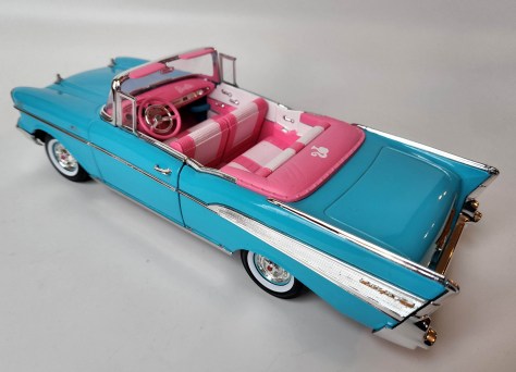I’m no Barbie expert (no sisters), but I do know that the bosomy blonde doll has been partial to brightly colored cars through the years, from Corvettes to Campers. And although the iconic toy doll debuted in 1959, it took until 1988 before maker Mattel slipped her behind the wheel of a 1950s American classic, a 1957 Chevrolet Bel Air Convertible.