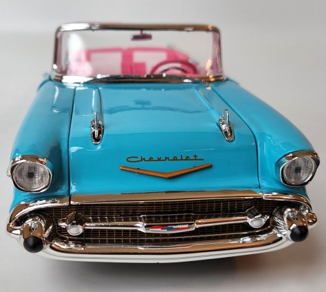 Finally, under the trunk’s golden chevron and Chevy script is the 1957 California license plate you may already expect. It reads … Barbie.