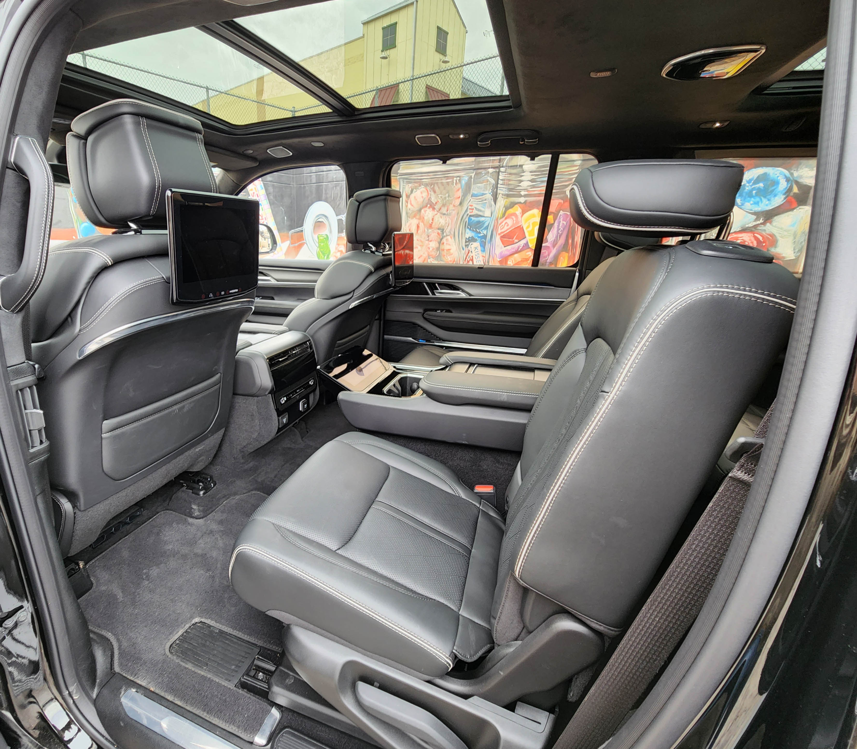 Jeep proudly points out there are five screens here now with nearly 75 inches of screen width. This one also adds a rear-seat entertainment package for $1,995 that puts 10.1-inch screens on the back of the front seats for the row-two captain’s chair occupants to watch their favorite shows and movies. Amazon Fire TV is part of that package.