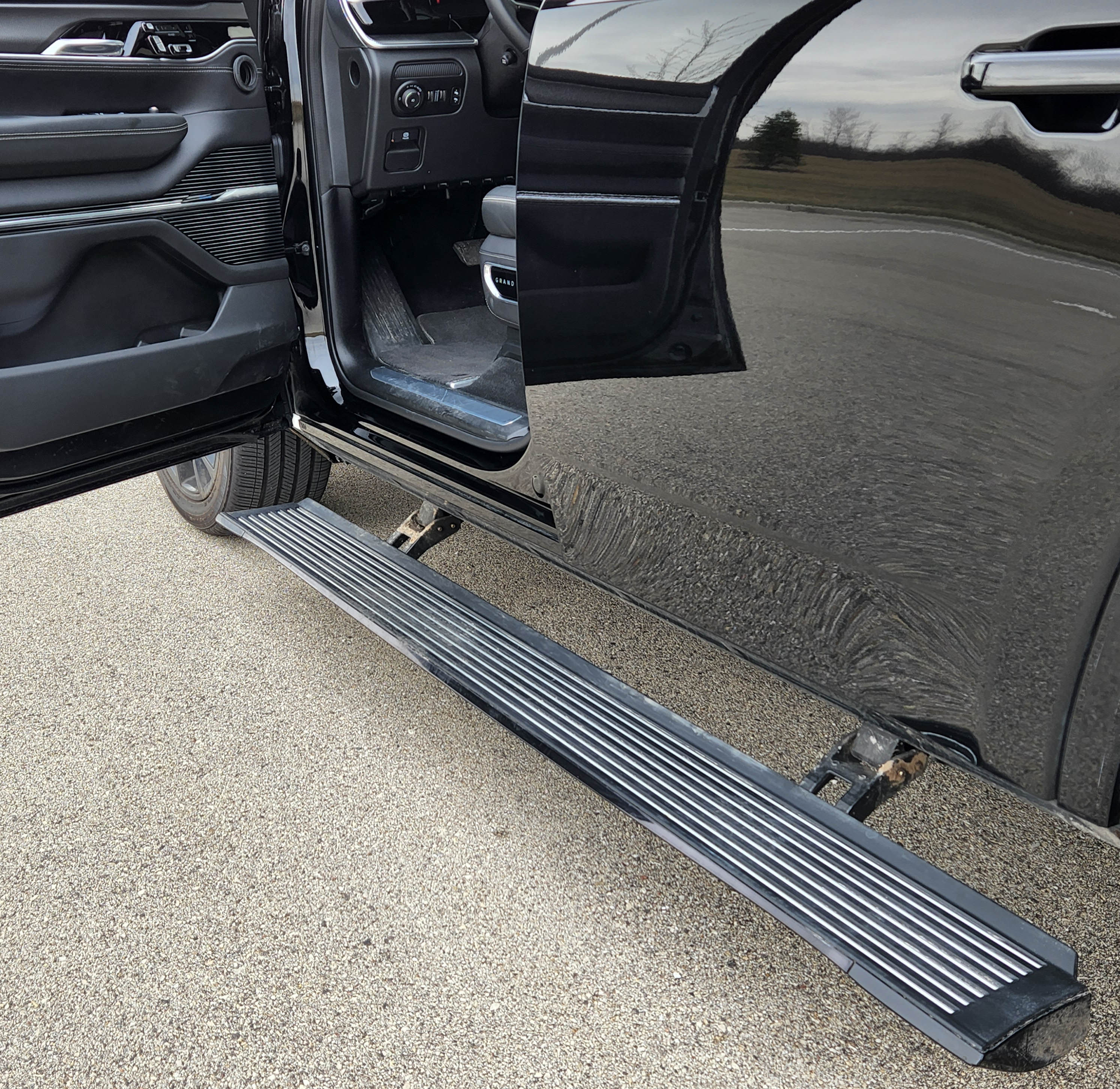 In addition to the safety equipment in the option packages above, a full lineup of safety gear is here. And for ease of climbing aboard the Titanic, er, Grand Wagoneer, power retractable running boards fold down to aid short folks getting inside, then fold flush to the Jeep’s sides after doors are closed.