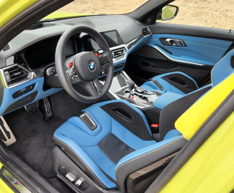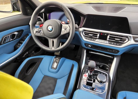 Further spiff comes from BMWās Yas Marina blue and black leather interior, with touches of that bright yellow for trim. It adds $2,550 to the price tag, but worth every buck.