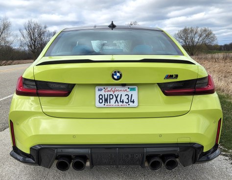 There also are adaptive dampers on the M3, plus adjustable brake pedal feel, particularly helpful if on track. A diffuser in back helps stabilize the car at speed and the rear spoiler should help too. Itās carbon fiber, as are the exterior mirror caps. That costs $4,700 extra. A carbon fiber roof is standard.