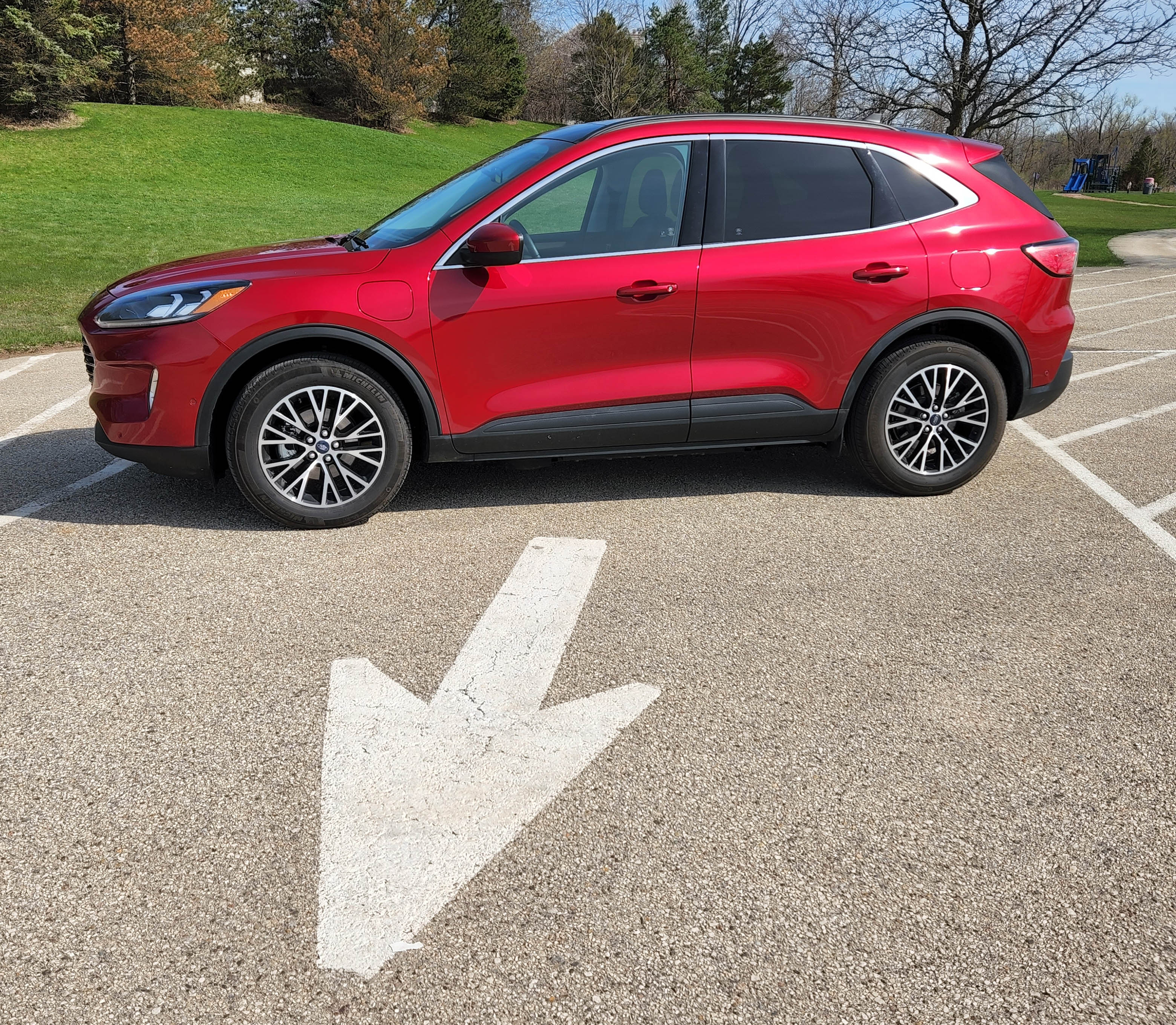 The test crossover was the top-level Titanium model starting at $40,130 but it crept up to $43,025 with its fancy Rapid Red Metallic paint ($395) and a Titanium preferred package, including a dual-pane sunroof, wireless charging and fancy floor mats, for $2,500.