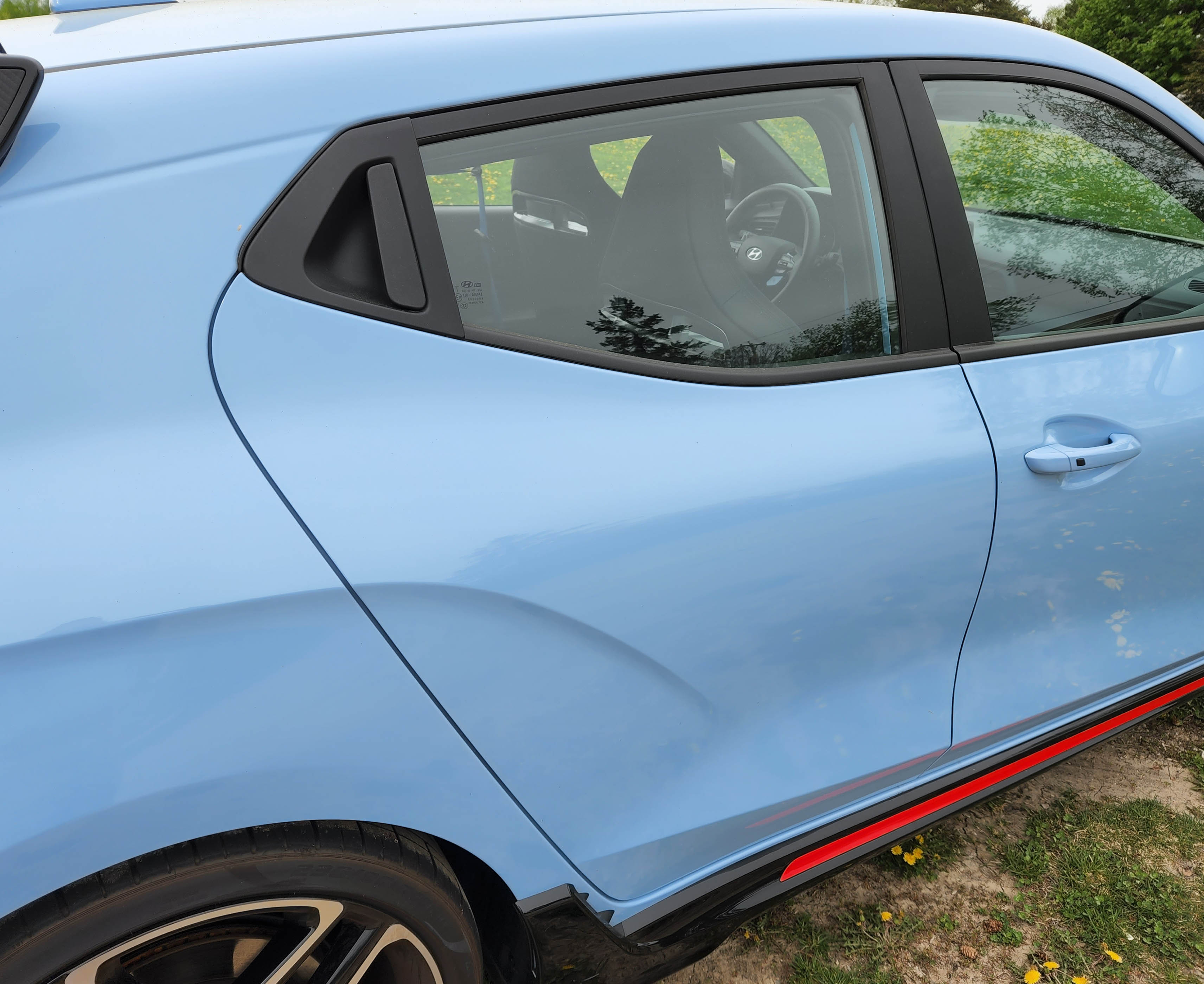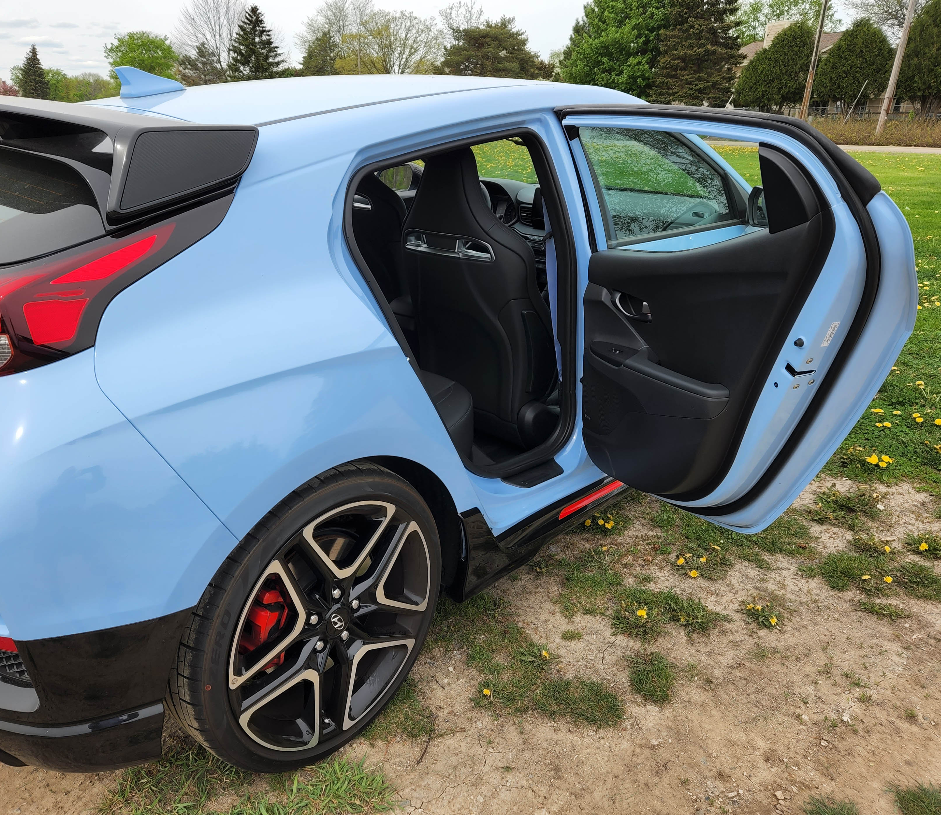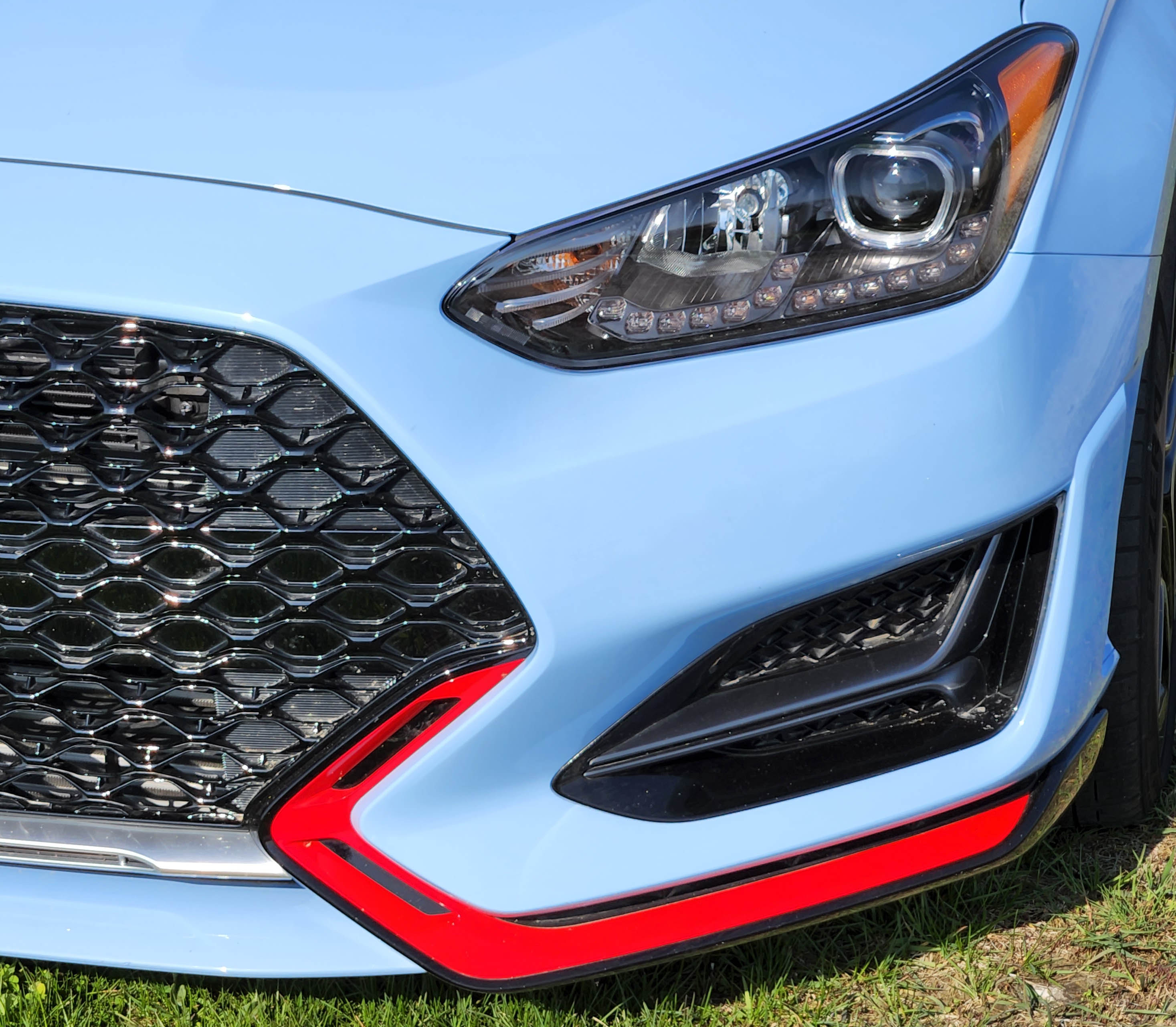 This week’s hot wheels came in the form a Hyundai Veloster N swathed in Performance Blue paint and featuring orange accents. Mature autophiles will immediately think Gulf Oil Le Mans racer paint scheme. Yes!