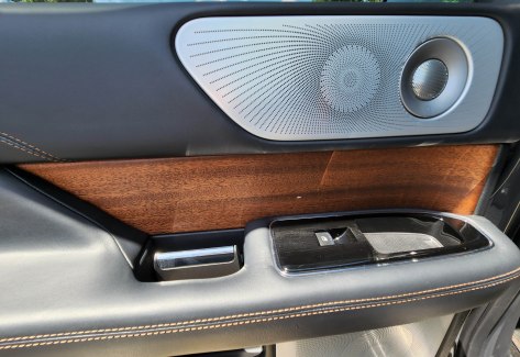 The Lincoln touts a perforated Venetian leather interior, black here, with “Brandy” stitching on the seats, dash and steering wheel. I’d call the color brown and the piping around the seats’ edges matches. Navigator’s seats are wonderfully shaped, but if you need to adjust Any aspect, there’s a button for that. Plus both row one and two feature a massaging function that is quite nice.