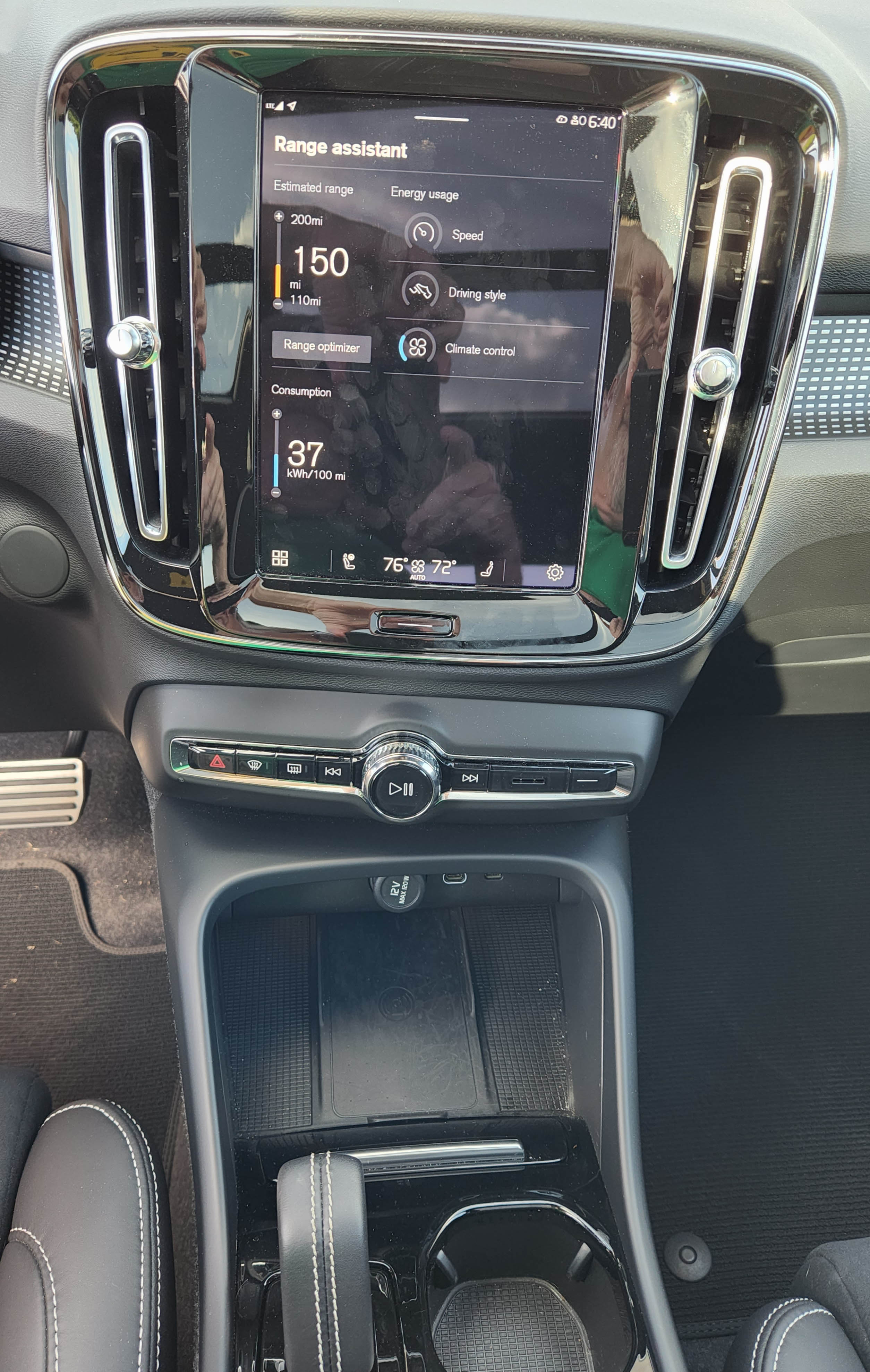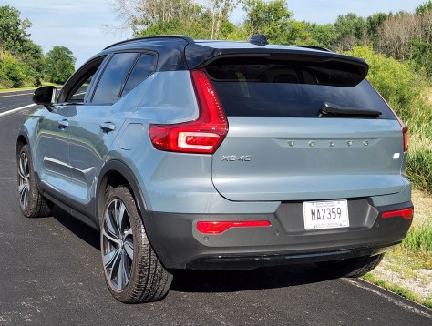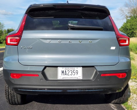 Also, like its gas-powered version, this XC40 handles well with a sporty flair. Steering is quick and precise, but with a heavier feel than the gas-only model. Ride, as in the earlier test drive is fairly well controlled, but still a bit chattery over crumbling Midwest roads. A longer wheelbase would help smooth that some as witnessed in some competing models.