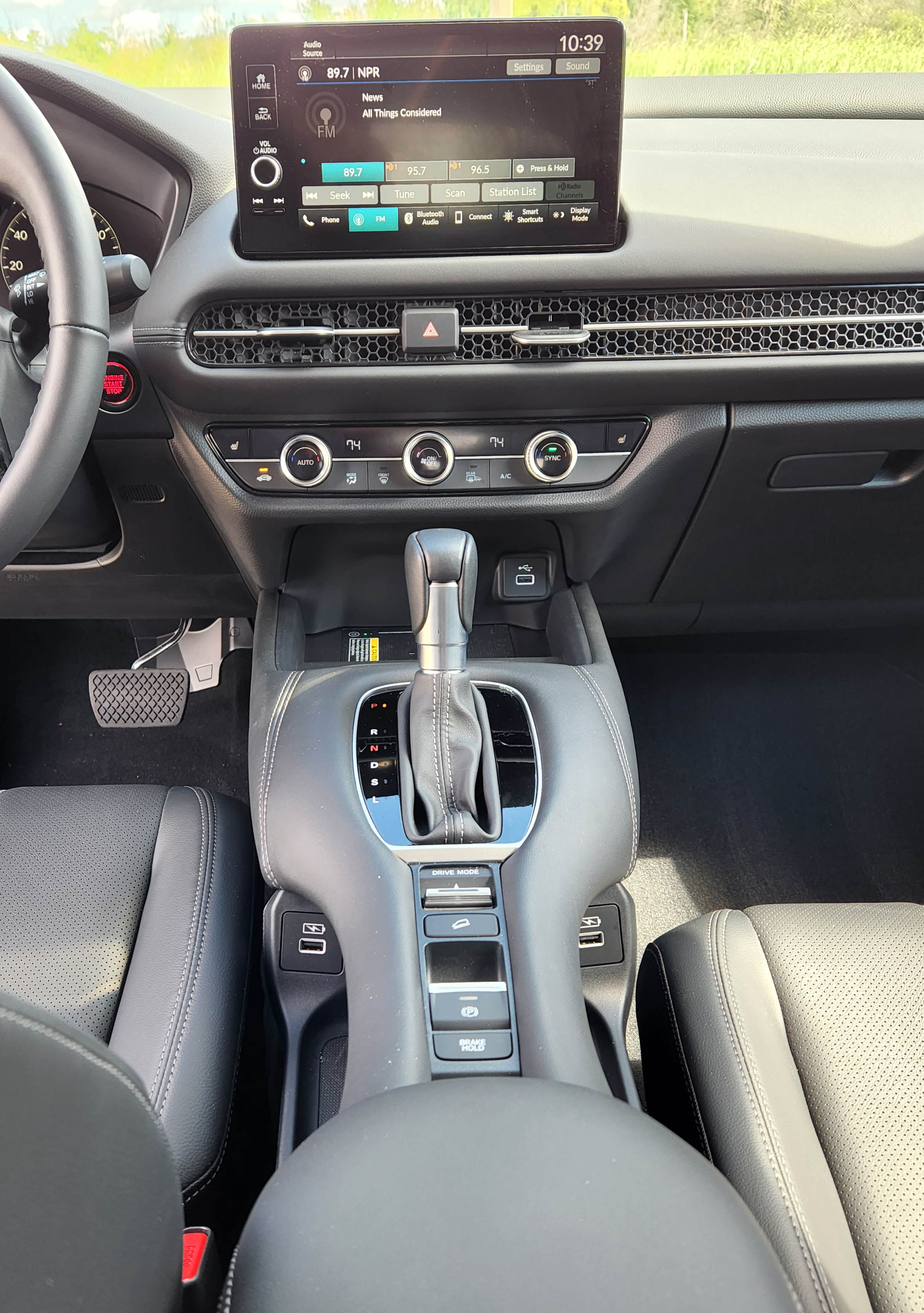 Power also increases from 141 horses to 158 from the new 2.0-liter I4. No turbo here, but that would make it a blast. Still, at this weight and with this crossover’s handling ability the HR-V seems perky and peppy and downright fun to drive, much like Mazda’s CX-30, almost.
