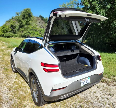 My minor complaint on charging is that the GV60’s plug is on the passenger’s side rear quarter panel. I’d prefer it on the driver’s side so it’s nearer a wall plug in a garage.