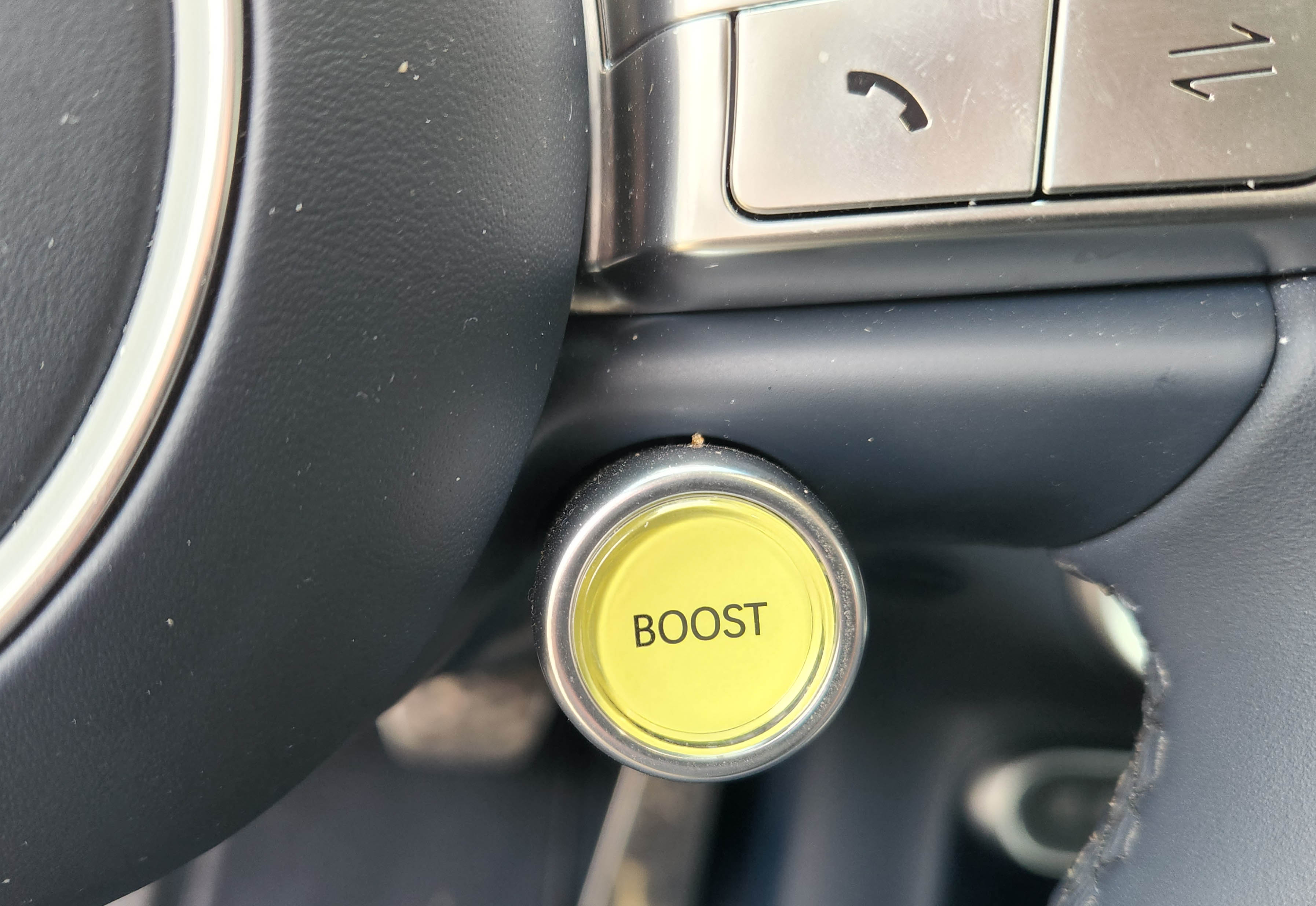 While there are three drive modes, Eco, Comfort, and Sport, the Boost button overrides and will allow you to thumb your nose at the exotic or muscle car/truck at the stoplight next to you. Eco, by the way, does considerably help extend battery range as it puts more charge back in the pack under coasting and braking action.