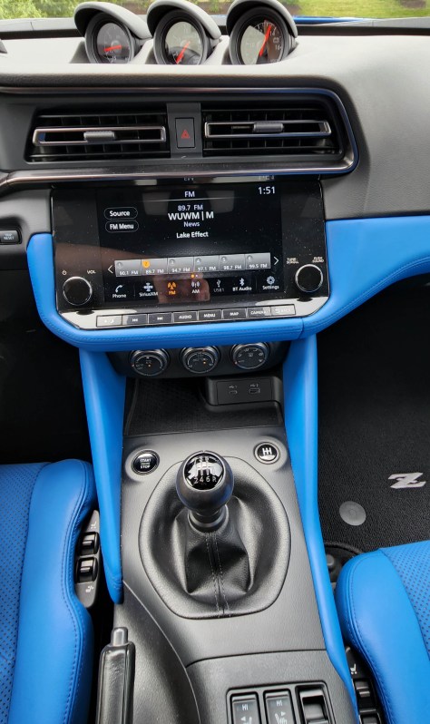 Fuel economy is nothing special, but you’re buying this for power, not efficiency. The EPA rates Nissan’s Z at 18 mpg city and 24 highway for the manual version and I got 22.8 mpg in a mix of city and highway. And yes, this drinks premium fuel.