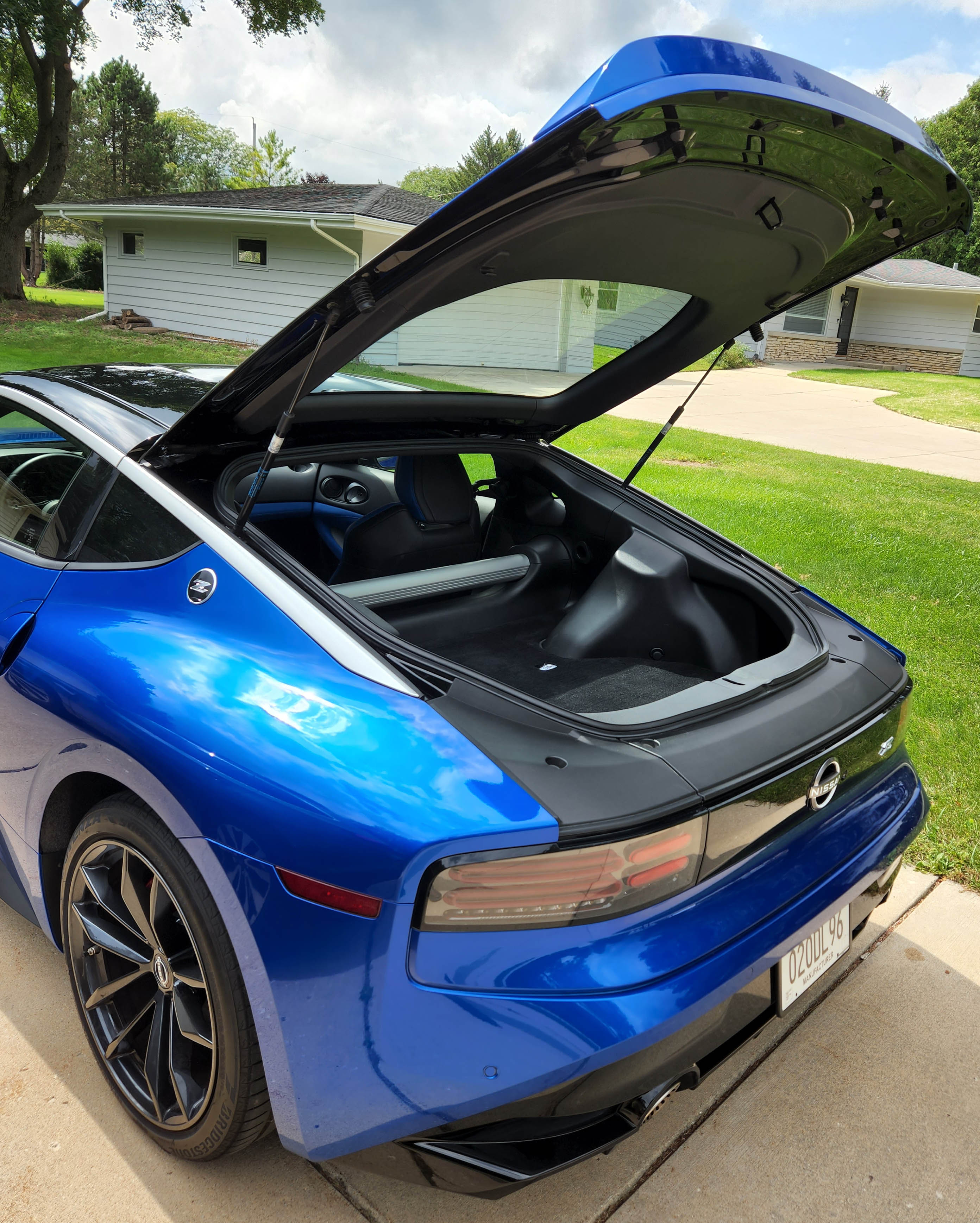 No pretense of this being a family car or carrying more than two as there are just two seats here and a long cargo area under a glassy hatch, but still just minor cargo space. Again, there will just be two of you with a suitcase each and Z accommodates that. Golfers may have to make other arrangements and forgo a hand cart.