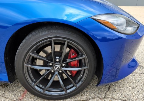 Z’s brakes also deserve a mention here. The Performance trim gets enhanced brakes with red calipers with Nissan labeling. Front and rear discs are vented 14 and 13.8 inchers, so stopping distance and quickness is awesome. I suspect the standard brakes aren’t too shabby either.