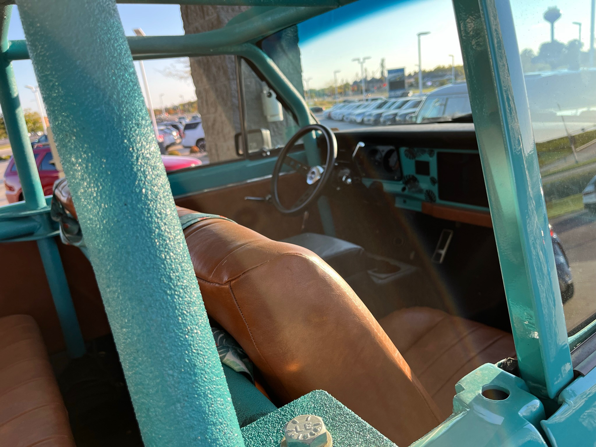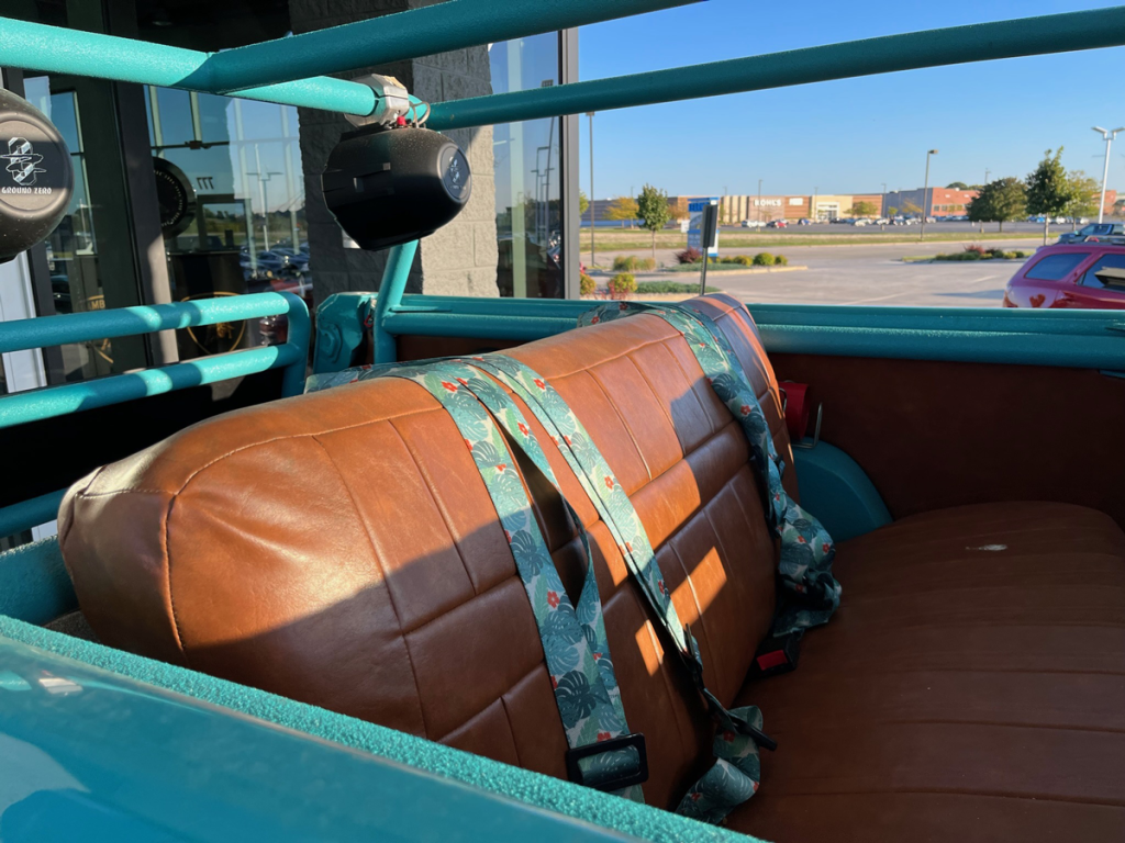 Inside are custom seat belts from Seatbelt Planet and all the accent colors along with a custom sound system and iPad dash, so they can hear the music over that loud motor.