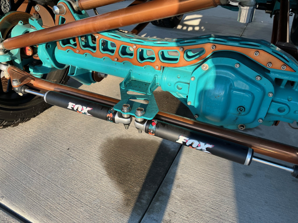 Underneath is a full custom cut frame carrying over the tropical theme. Instead of using the AMC 360 V8 that would have been standard on this Cherokee Chief in 1979 they dropped in a LS motor.