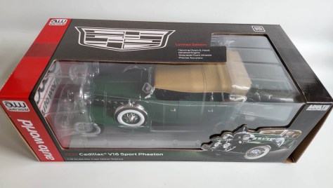 Auto World expands its 1:18 scale classic car lineup with a new dark green 1932 Cadillac V16 Sport Phaeton and it’s an eye-pleaser.
