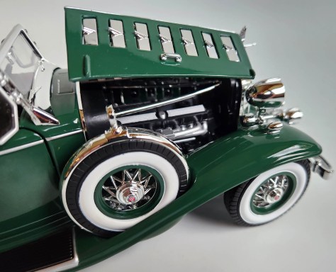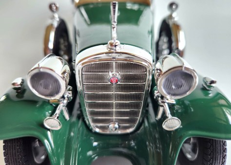 Cars were both simpler mechanically, yet more ornate in the 1930s, Depression or not. This 1:18 model is a sterling representation of that chrome-laden era and the elegance of its luxury cars.