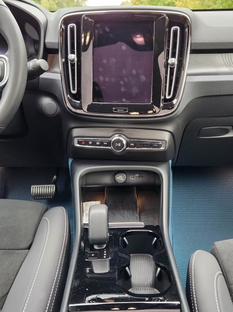 Note too that the car starts as soon as you are inside with the fob and sit in the driver’s seat. It knows you’re there due to the seat pressure and all electronics start immediately so you can quickly put the C40 in gear. Park is a push button. When leaving you simply open the door and depart. The car’s radio continues until you lift off the seat to leave and then it shuts down.