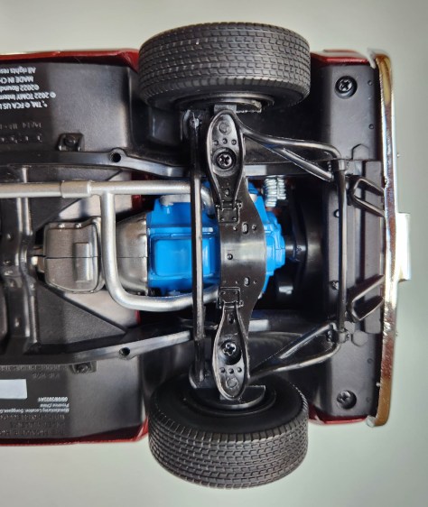 Rubber tires are treaded and branded as Goodyears and freely roll, plus the front wheels are steerable for posing purposes. As with other AW models, the undercarriage is nicely detailed too, including a spare tire under the bed, a full exhaust system, differential, and detailed front suspension.