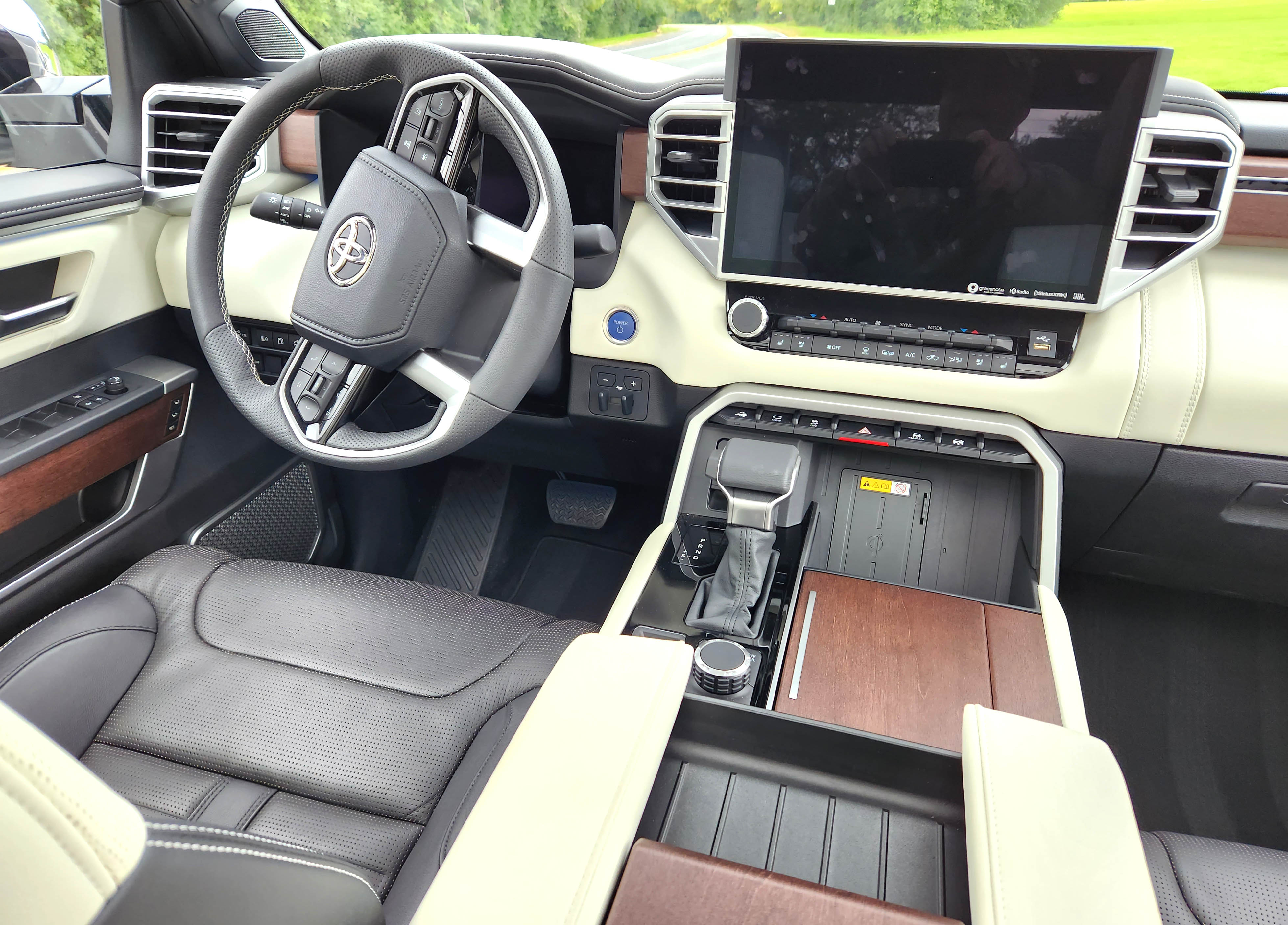 That was just one of three options here, the main one being the air suspension, so the Tundra’s price didn’t climb much from its $75,225 start, including delivery. That’s right the Capstone is a high-end luxury truck so settled at $76,760. A lease or a 6-year purchase might be called for at that price, but it’s not out of line with the F-150 hybrid. My Ford test truck last year hit nearly $71,000 and while nice, the Capstone’s interior is superior.