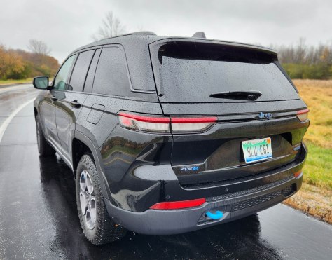 Cool too that Jeep allows the driver to select (via dash buttons) hybrid power, electric only, or save-E, which mostly runs the Grand Cherokee on gas, saving the electric charge for when you most need it, say in town, or when slopping around field or forest.