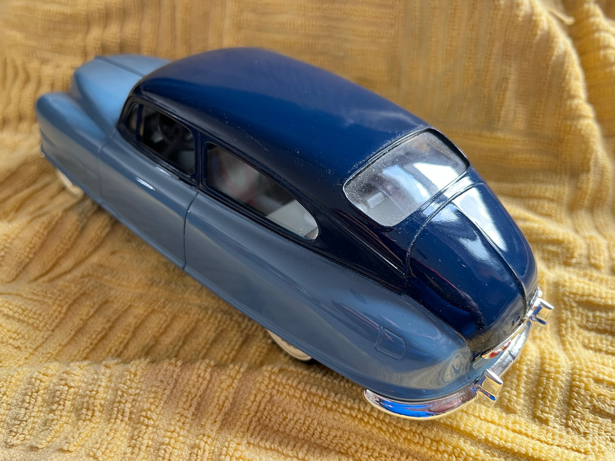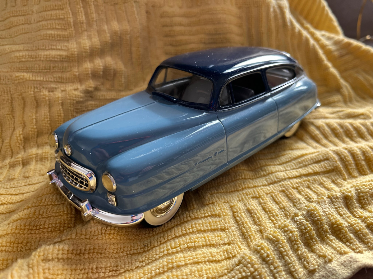 In the late 40s and early 50s, the bathtub styling trend was hot and Nash was seen as the leader. But this was much more than just styling. Nash Engineering VP Nils Wahlberg had thing about aerodynamics, along with his designers performed wind tunnel studies with a full-sized plaster model. Almost unheard of in the automotive world and long before coefficient drag was even a factor. They found that their eventual design required significantly less road horsepower to maintain 60 mph than a comparable Buick or Chrysler at the time and came up with the name Airflyte.