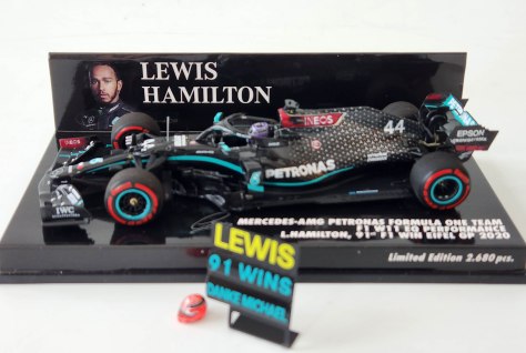 Another Formula 1 season starts this weekend and to mark the season’s launch it seems appropriate to review a Minichamps 1:43 scale model of the Mercedes-AMG Petronas driven by all-time F1 race winner Lewis Hamilton, when he set the record in 2020.
