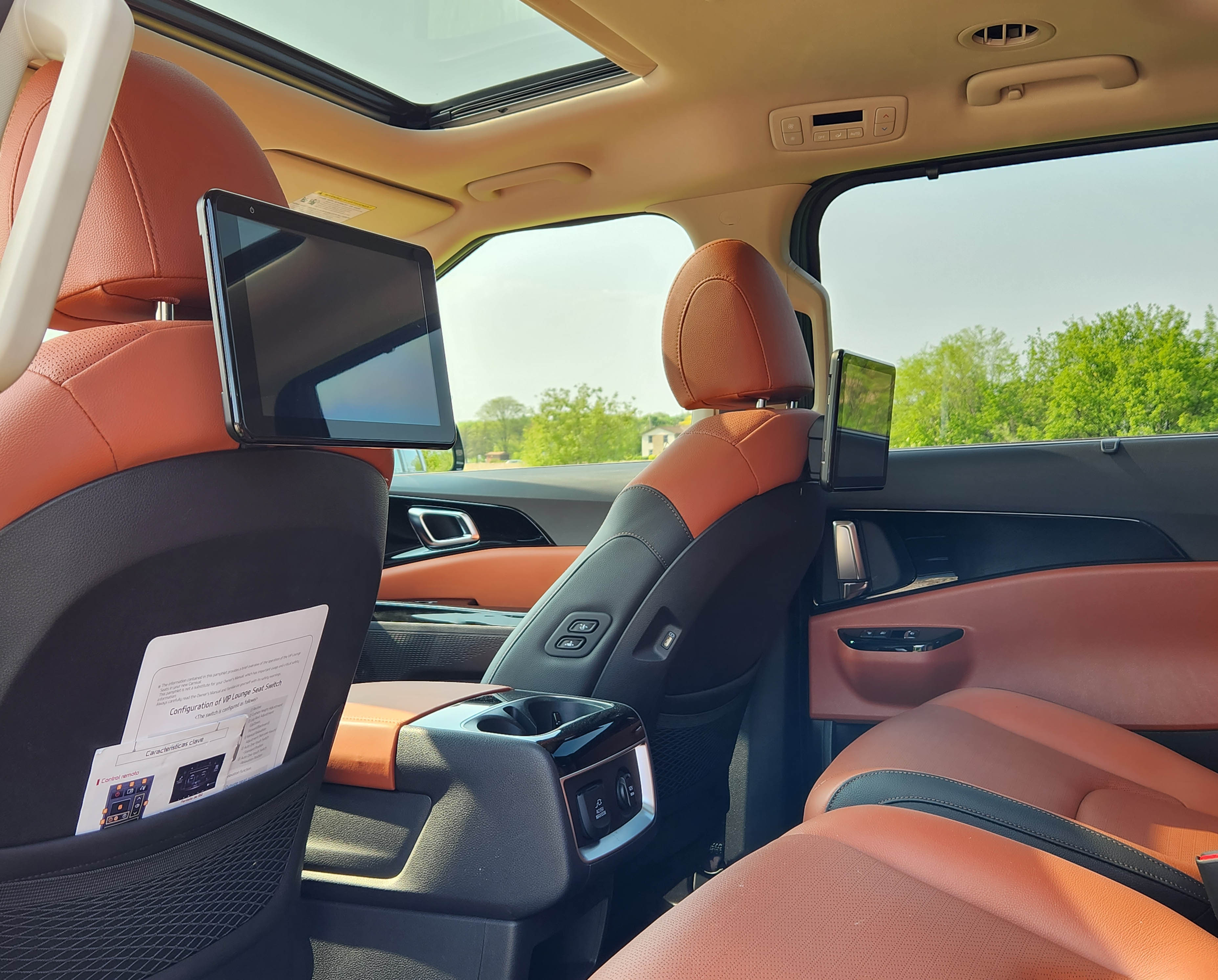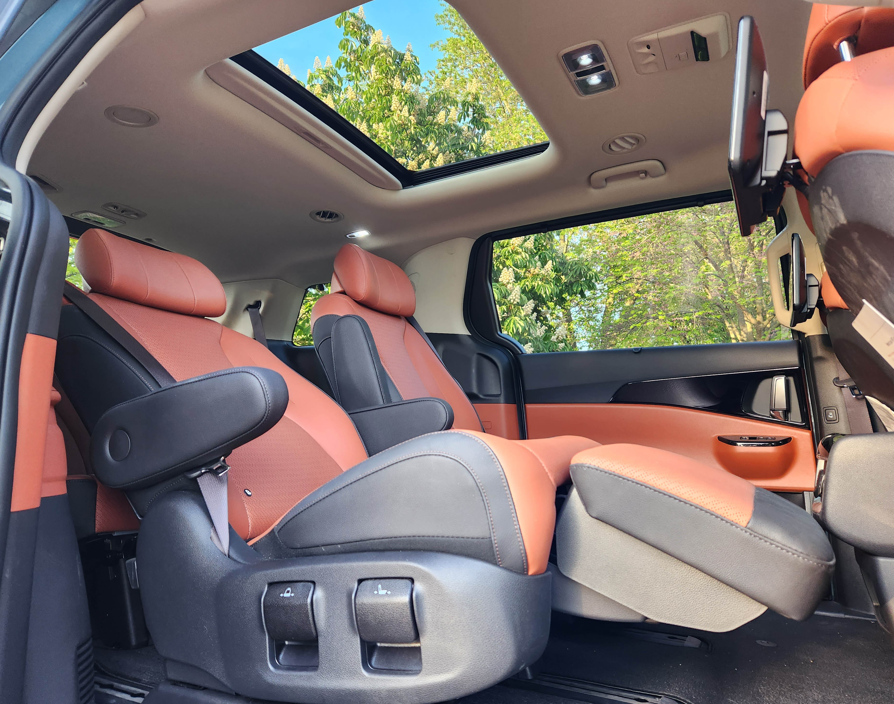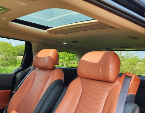 SX Prestige wraps its seven occupants in leather and technology with the snazziest second row seats ever for a family hauler. We’ll start there as I drove this one to Indianapolis and back with several aboard, including a 14-year-old grandson. He was all thumbs up for row two.
