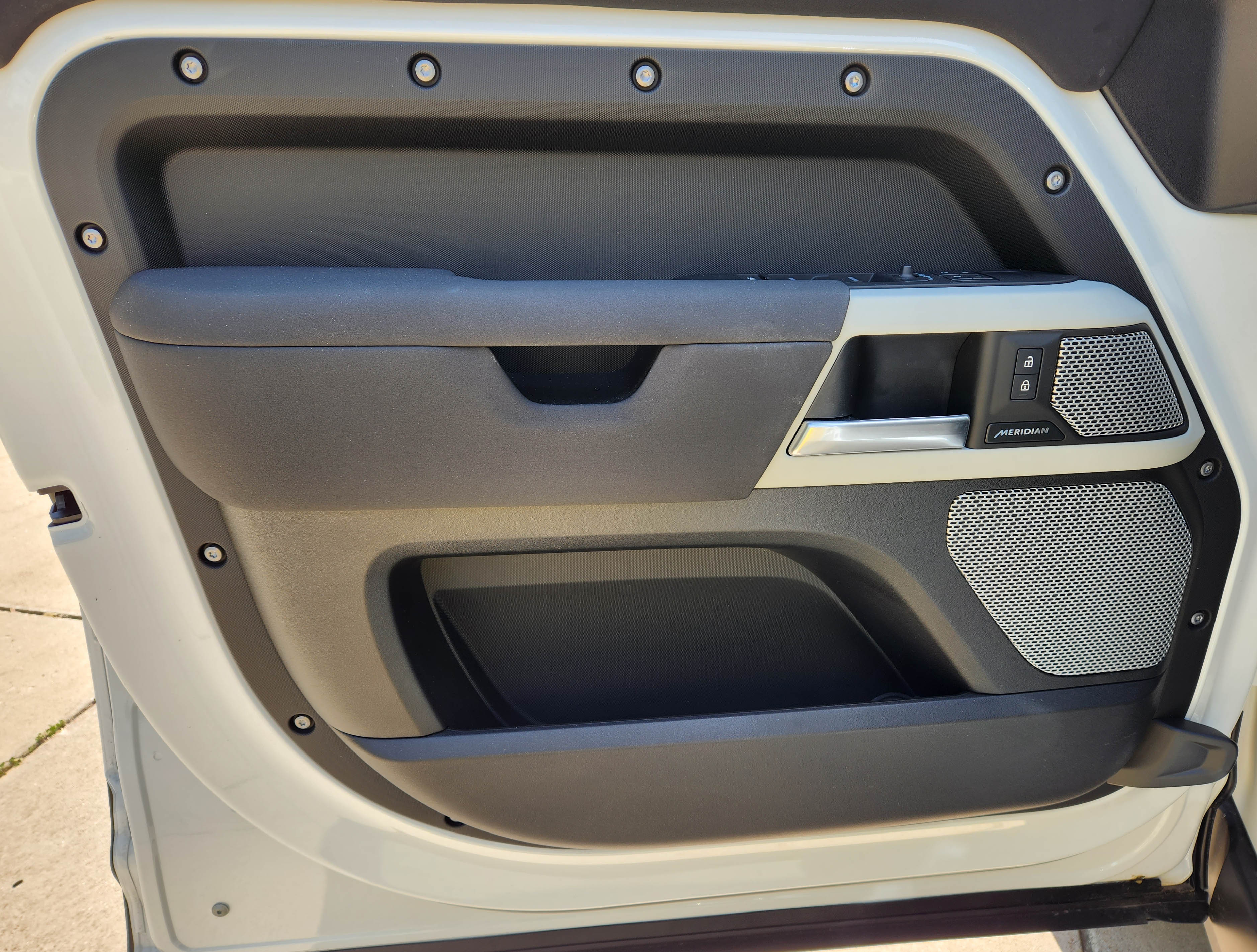 Rover’s Meridian sound system is good though and once you select your favorite XM channels it’s easy to adjust on screen. I like the volume roller knob on the steering wheel hub for quick control, plus there’s a knob near the passenger’s seat for their convenience.