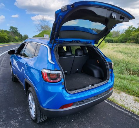 Not unexpectedly there are a few bugaboos that can annoy, starting with a still massive A-pillar that partially blocks side views, and extremely noisy clickity-click turn signals which alone could be a deal breaker for me. There’s also a bit, not a lot, of tire noise with the Compass, and the radio must be on to see the time and temp settings, or navigation system if you have one. This trim does not.
