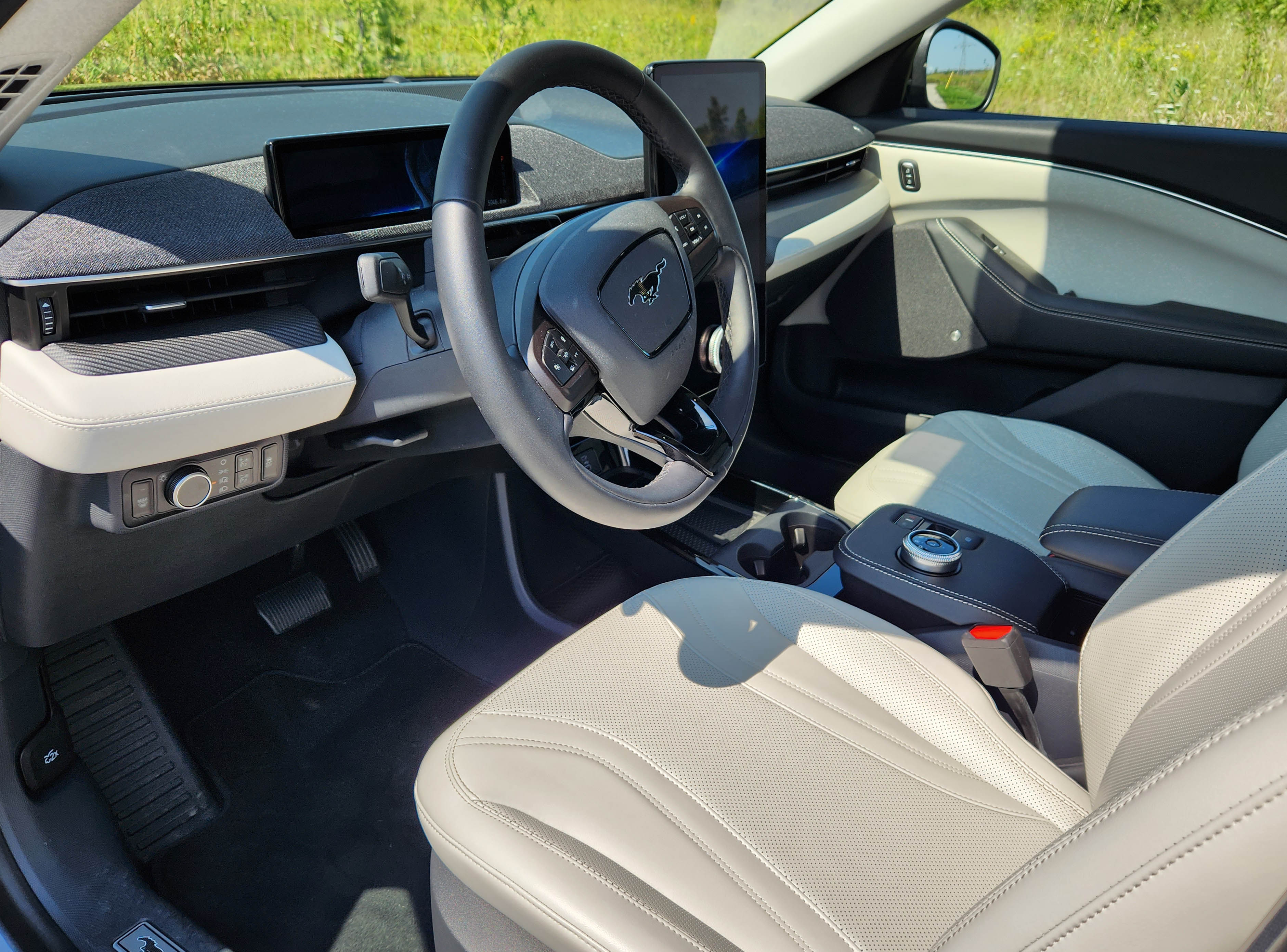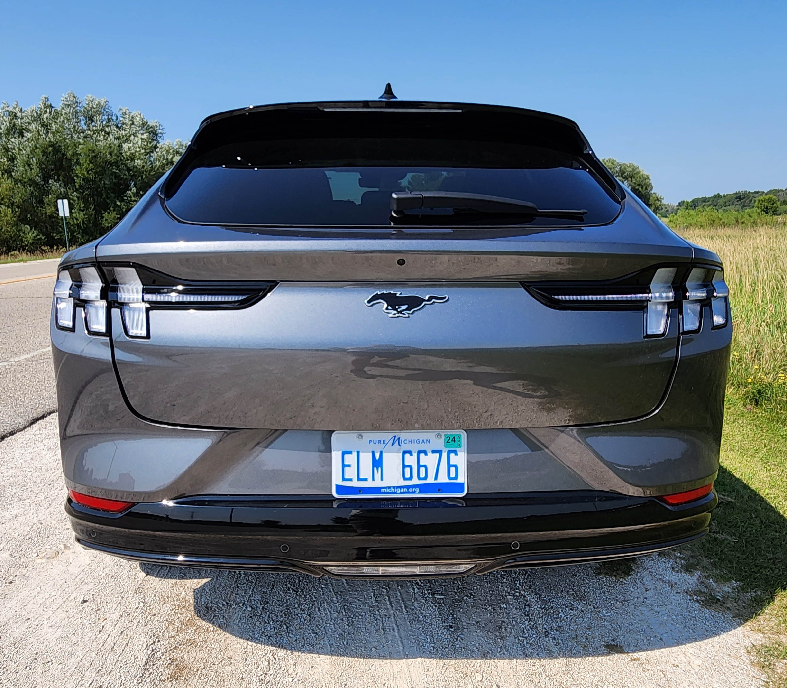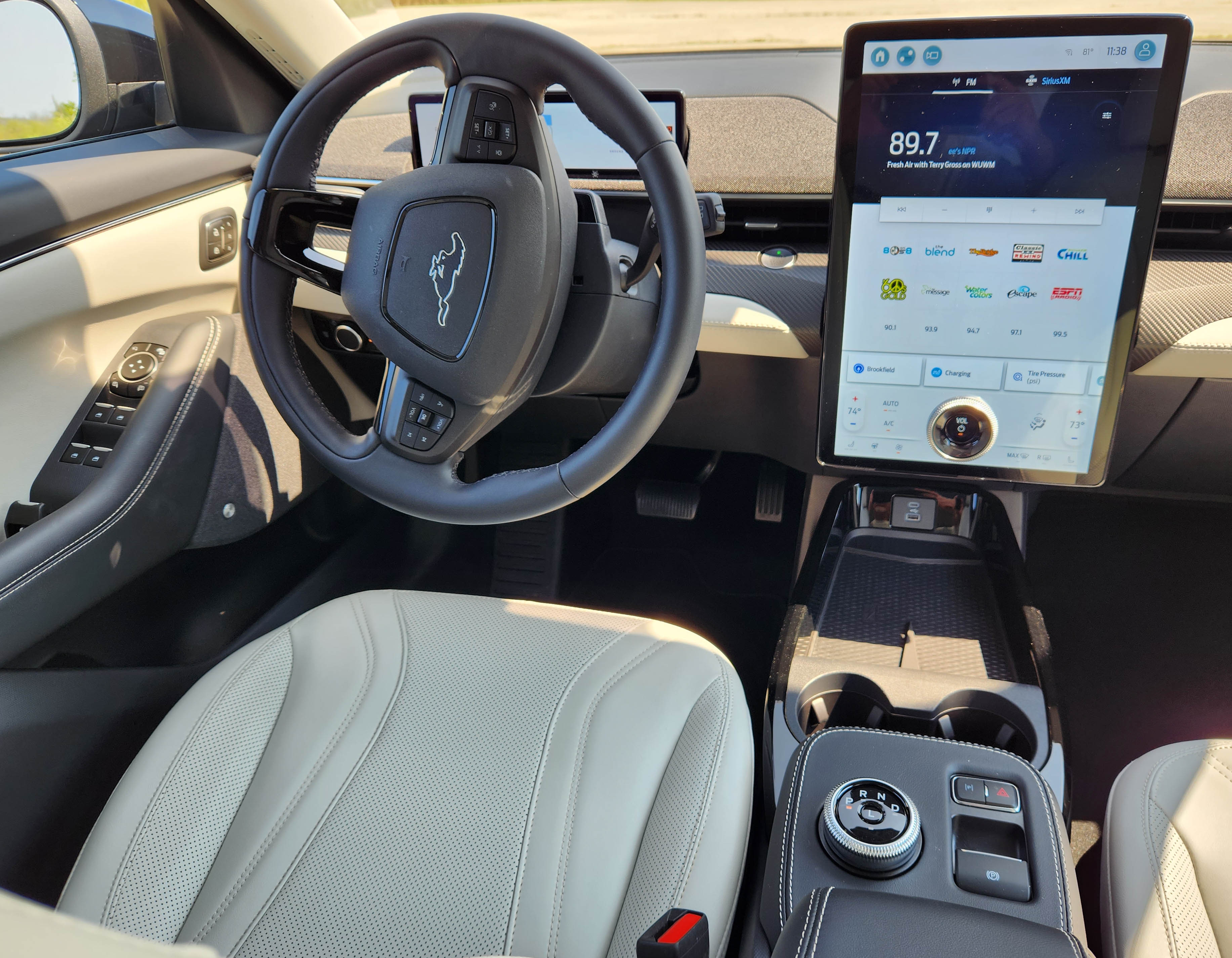 I’ve grown to appreciate the Mach-E’s exterior styling with its Mustang three-bar taillights, nicely shaped profile and the Mustang emblems nose and tail. Still not sure about the oval non-grille grille, but other than VW’s and Volvo’s noses this seems a Ford styling statement.