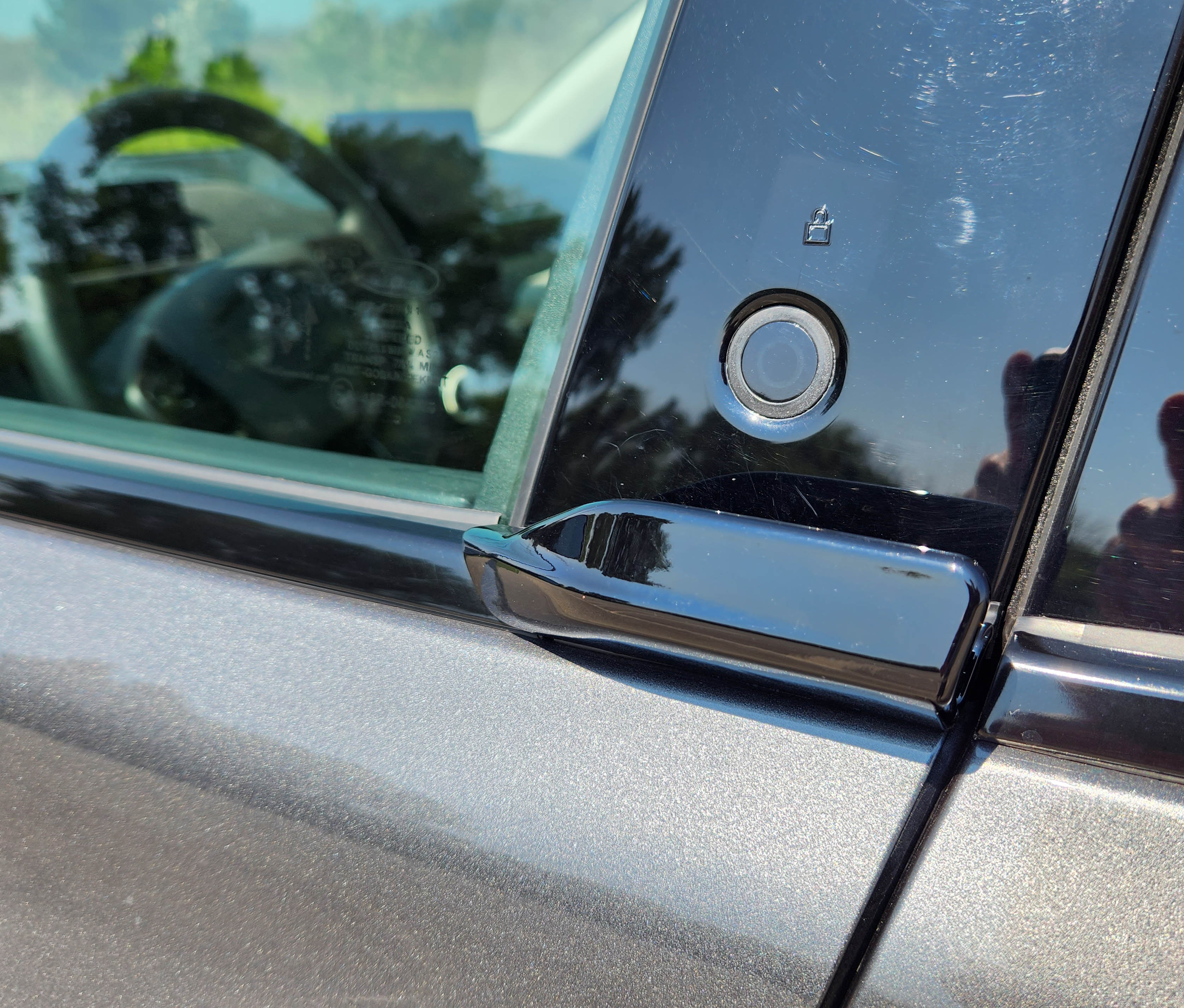 One downside to the swoopy profile is the roof requires big pillars to keep it afloat overhead. So the A-, B-, and even C-pillars are rather thick and can limit outward sight lines. There is a 360-degree camera for easier backups though.