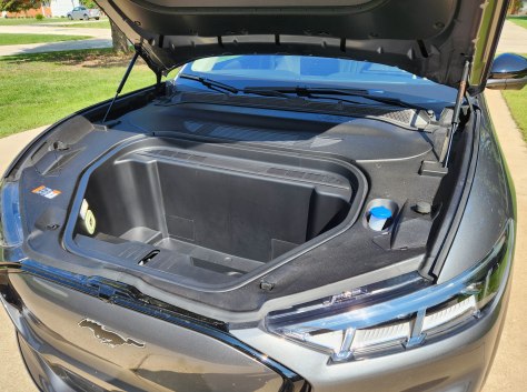 There’s also a frunk that’ll hold a bag or other sundries, plus has a drain so one could load it up with ice and beverages for tailgating, or is it frunkgating then?