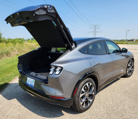 Delivery fees also are skyrocketing from under $1,000 to up to $1,595 for Jeep. Ford tacks on $1,300 here, included in that $58,975 base for the Premium AWD. With the extended range battery this tester hit $65,925, but Ford assures us the Mach-E is eligible for a $3,750 federal tax credit. That’s some consolation.