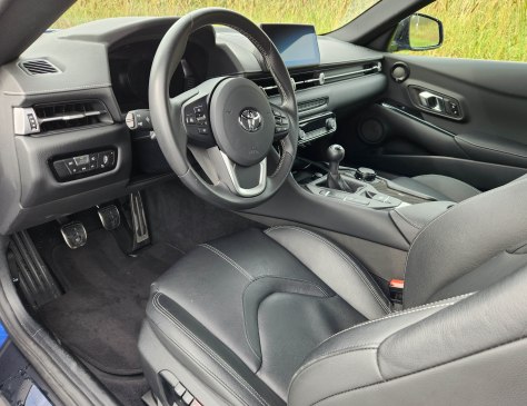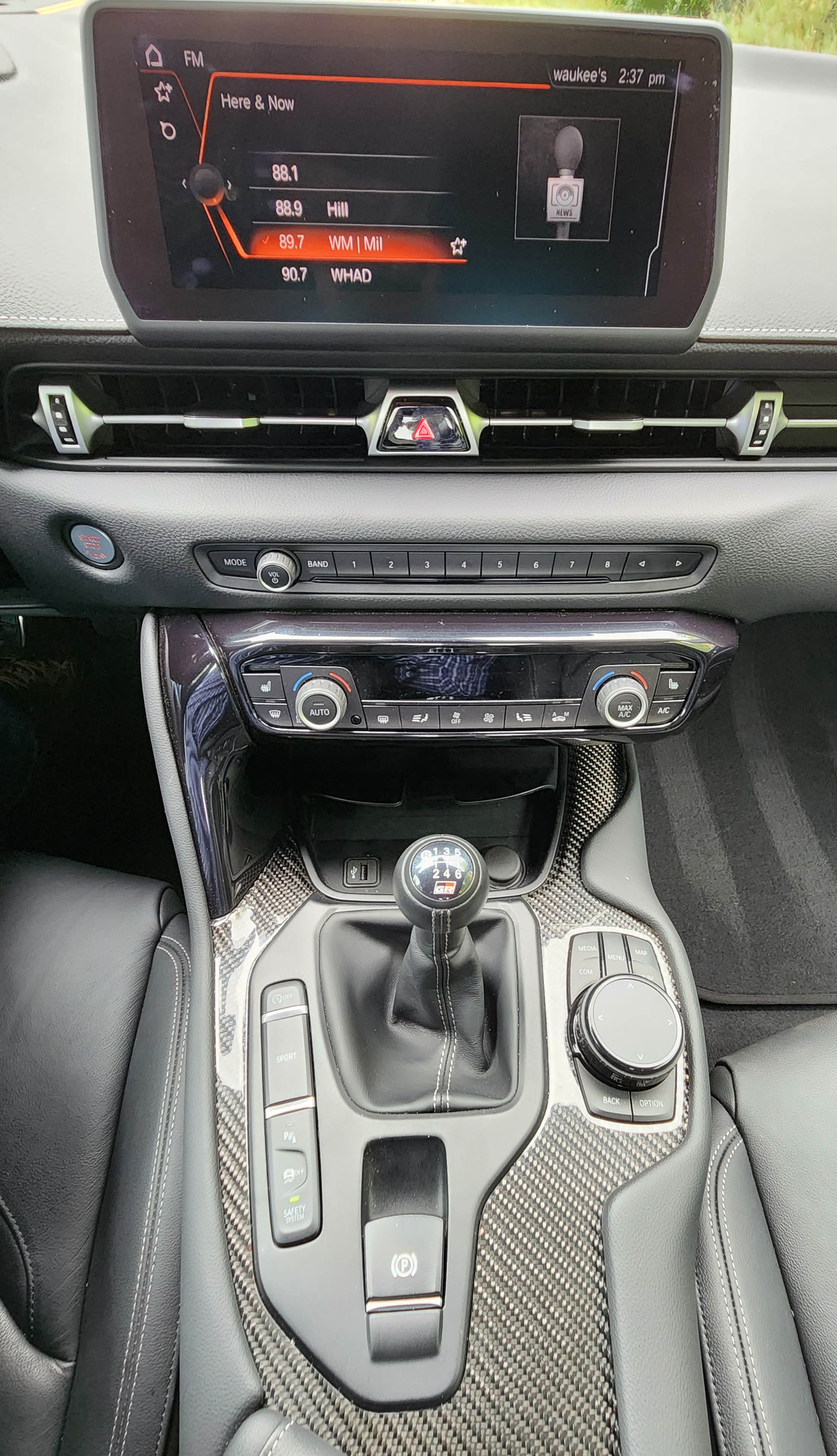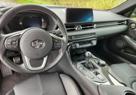 It took three years, but the manual shifter is now available and, not surprisingly, it’s a smooth one, mostly, creating an even more engaging driving experience. I say mostly because slipping the Supra into reverse gear is pretty sticky, at least on the test car. But zipping from first through sixth gear is a blast, and downshifting automatically creates a happy engine blip. Cool beans!