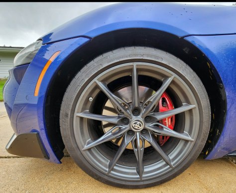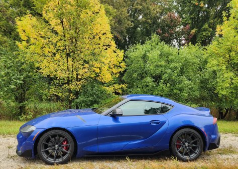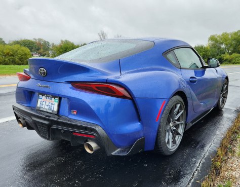 Low-pro Michelin Pilot Super Sport ZR19 tires up front and 18-inchers in back give the Supra excellent grip, but also contribute to the stiff ride and noisy interior as the tire and road noise can create a disquieting drone on a long highway run. I drove to Chicago and back in this one.