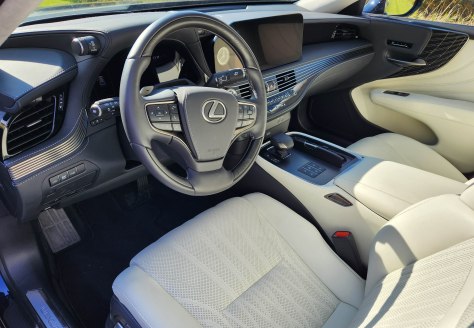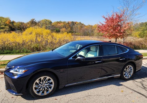Then there’s the price for such luxury. A base LS with gas engine and rear-drive starts at about $79,600 and the sportier F Sport with more form-fitting seats and stiffer suspension lists at $82,500 with the twin-turbo V6. This 500h AWD lists at $113,935, including delivery and added just a few simple options to maintain its appearance, plus lighted door sills for $450. Total was $114,090, or more than my house cost 30 years ago.