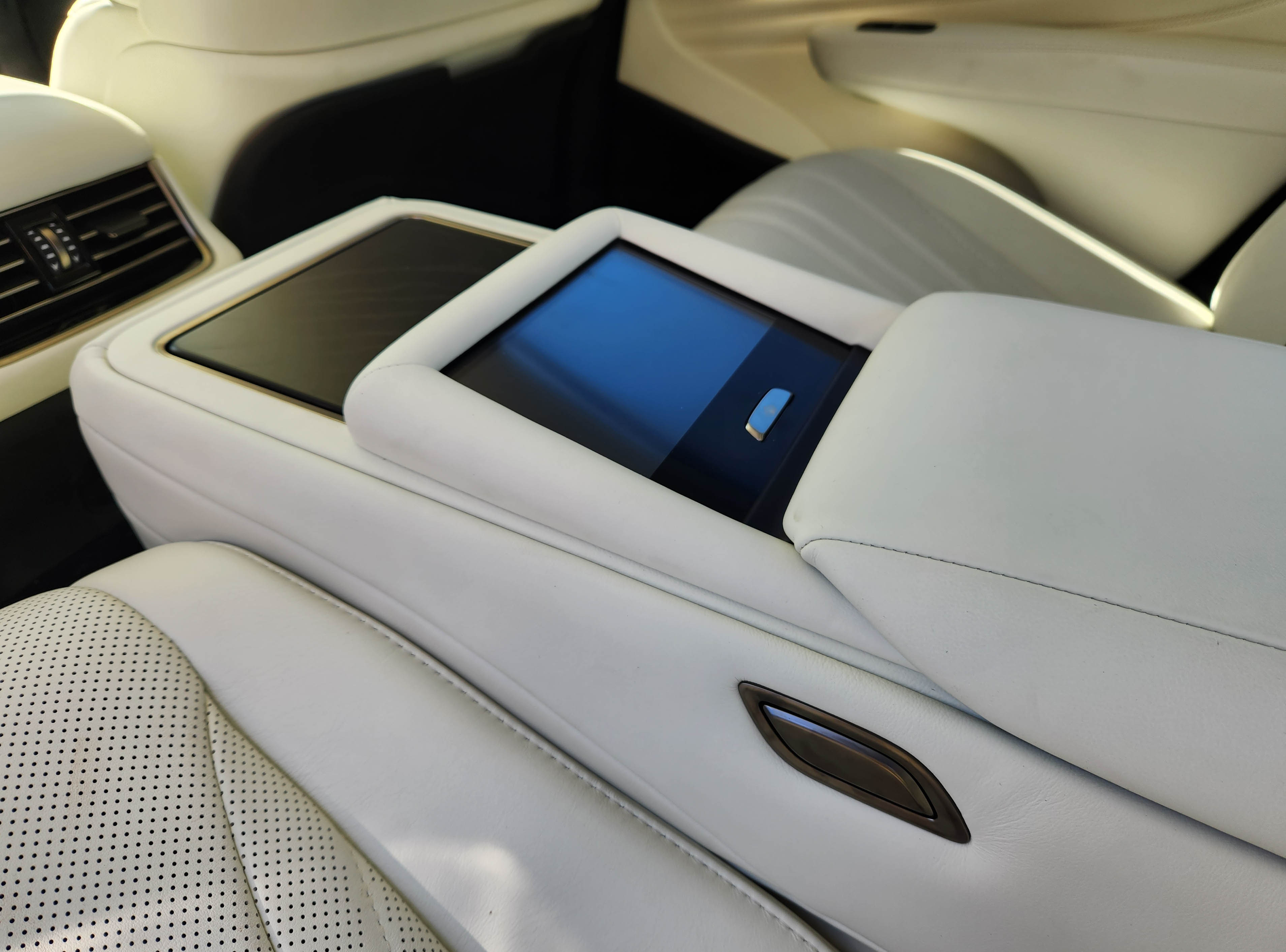 But here the passenger could snooze and so can the folks in back. As a giant armrest folds down between the rear seats and includes a touchscreen with controls to recline the seats, turn on heat or cooling for the cushions, and also will massage its occupants. That my friends, is luxury that even your old Aunt Ida could appreciate.