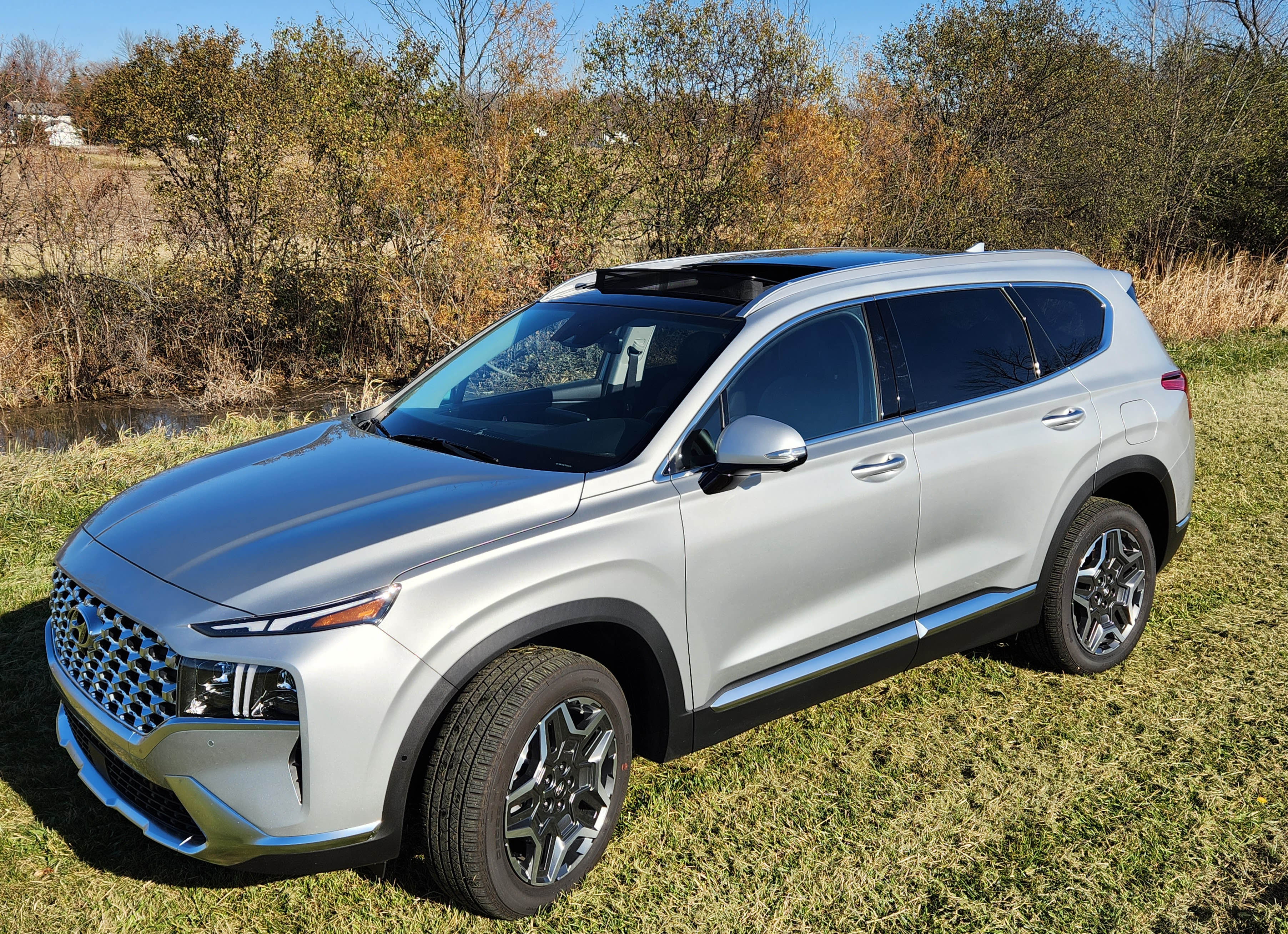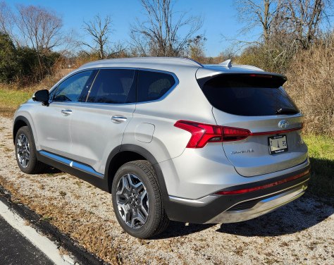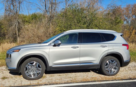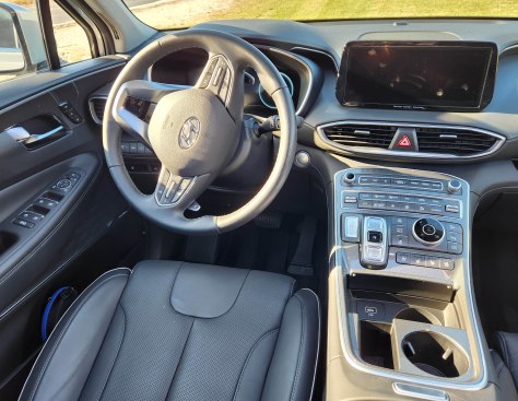 That’s right, just back it into the garage to get the right rear close to a plain old 110-volt outlet and plug it in for 30 miles of electric charge overnight. It was cold during my test, so the gas engine tended to fire up first to warm the vehicle each morning. But then the Santa Fe was cruising on EV power much of the time, especially at city speeds, cutting my gas use. The most I saw on the trip computer was 70 mpg, but once the EV ran out the figure quickly dropped to the mid-40 mpg range.