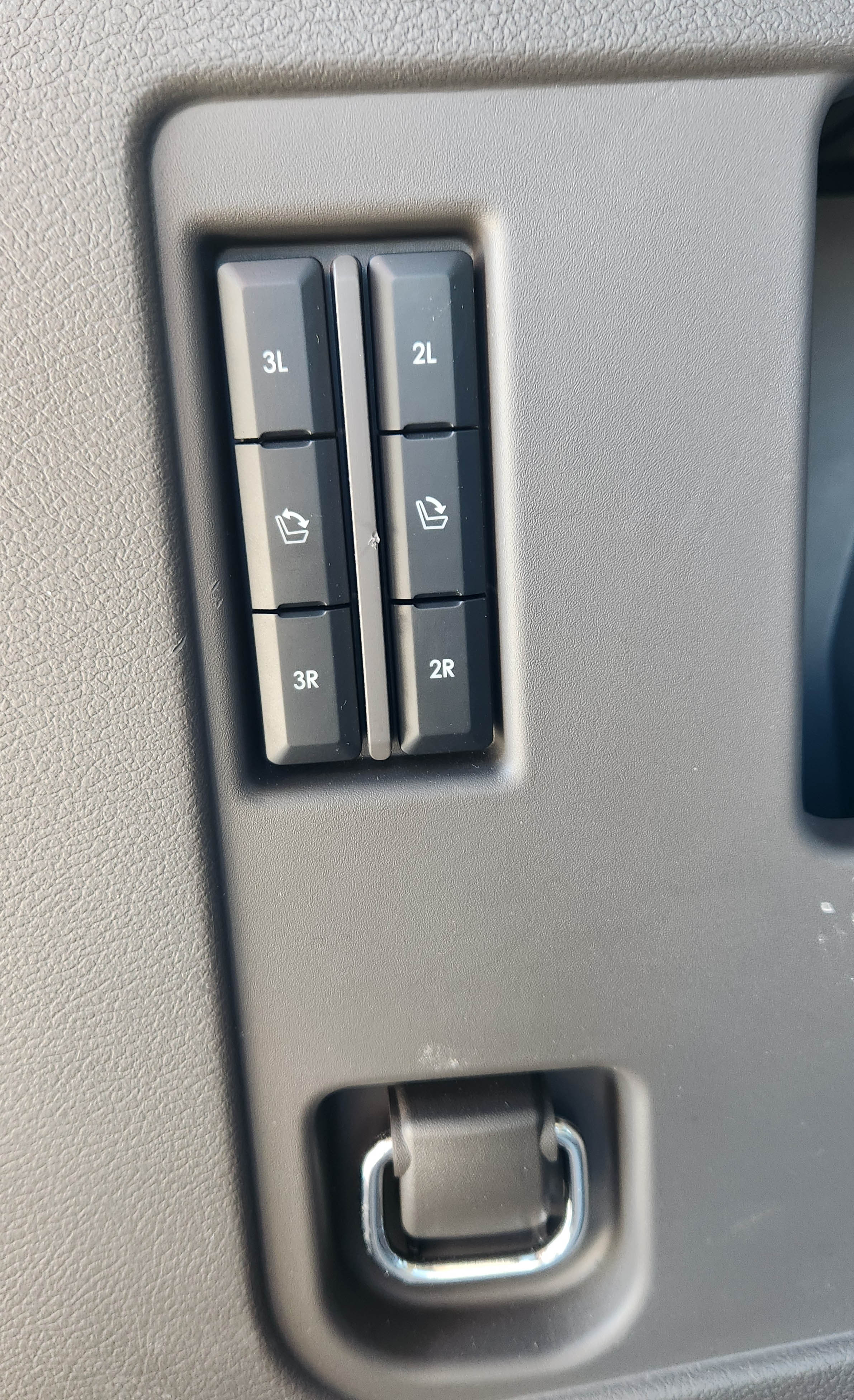 Both rear rows also will power down thanks to handy buttons inside the power hatch. Note that row three seats power down and back up, while row two seats require a human to lift the backs to a vertical position. That’s sort of a heavy task, but hey, you’ve got a gym membership.
