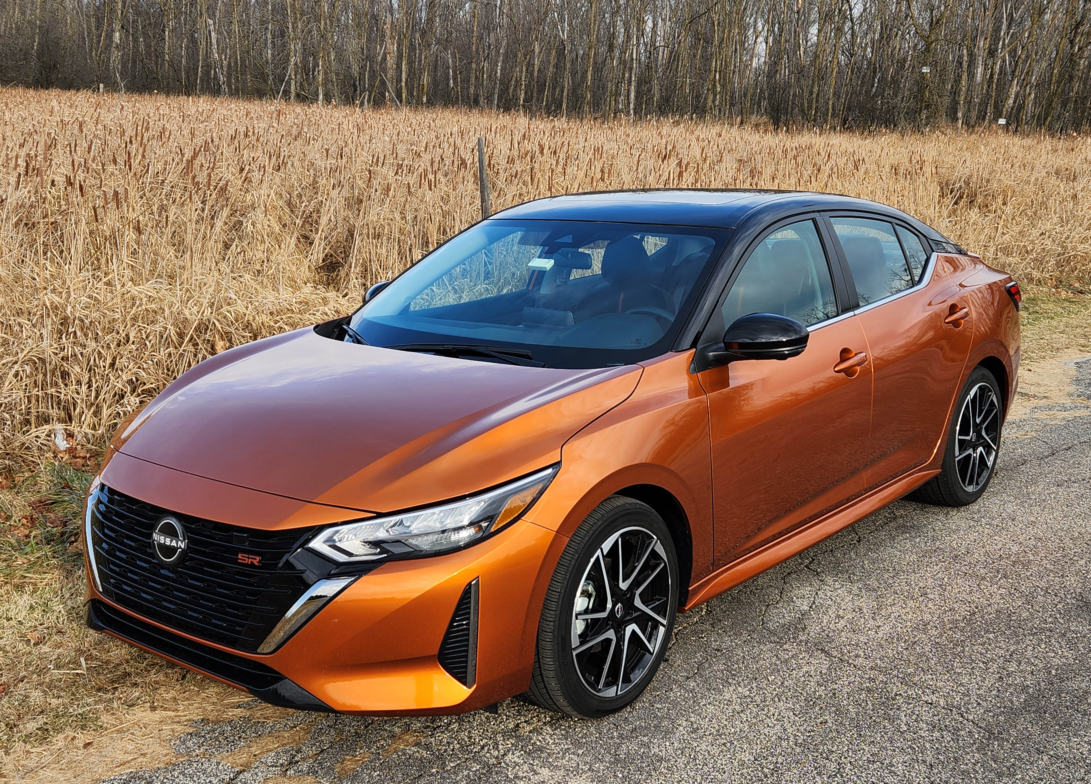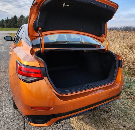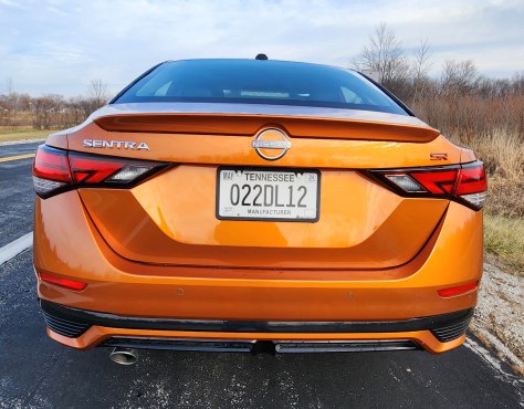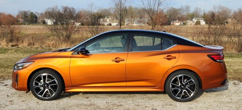 Sentra looks great with a sleek roofline that flows smoothly into the trunk. It’s handsome and svelte with new thinner head and taillights. Add the test car’s eye-popping Monarch Orange paint scheme with black roof ($645 extra and worth it) and you’ll never again walk into a parking lot and wonder where your car is parked. This color screams, but in a good way.
