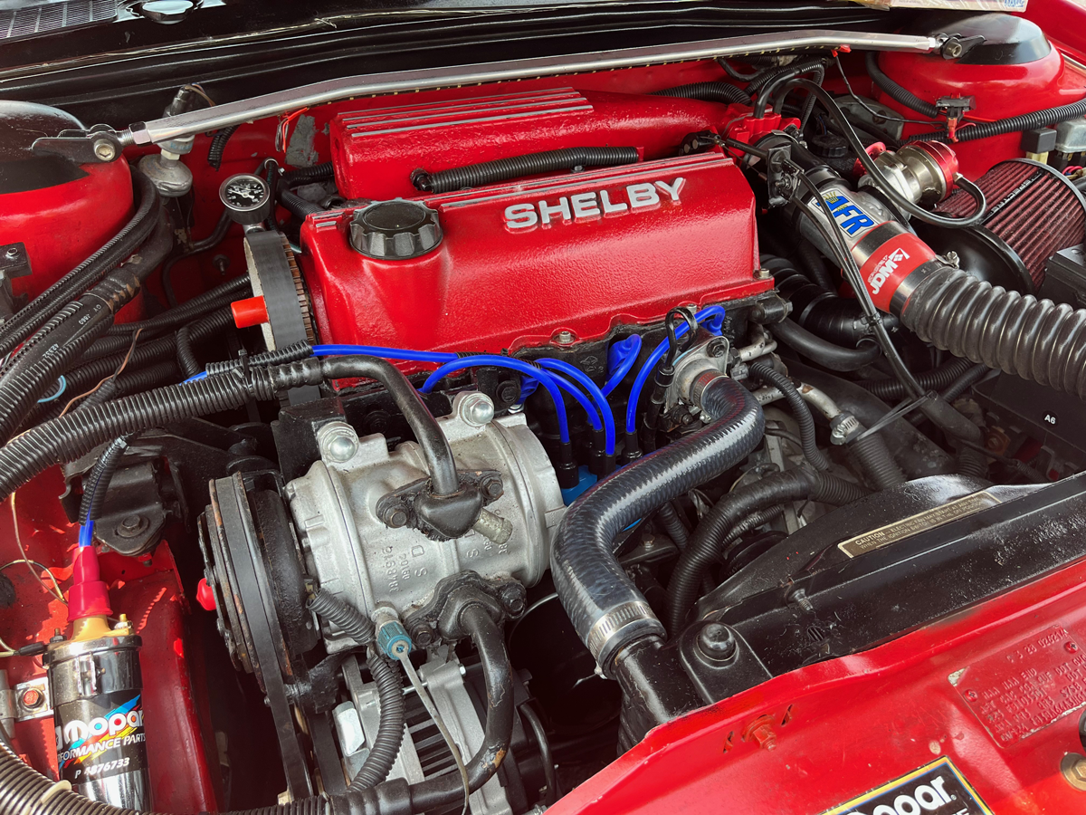 Featuring Chrysler’s newly developed 2.2-liter “Turbo II” engine, with a Garrett T3 turbocharger it could put out 174 horsepower and 200 lb-ft of torque. Weighing almost nothing, it could hit 60 mph in 7.5 to 8.5 seconds depending on who was doing the testing. It came with larger anti-roll bars, four-wheel disc brakes, improved struts, and wider Goodyear Eagle Gatorback tires. Though it had the Shelby name, Carroll Shelby had nothing else to do with the cars. This was a typical car of the 80s coming with T-tops, louvers on the back window along with lower ground effects stuff and you were living the dream.