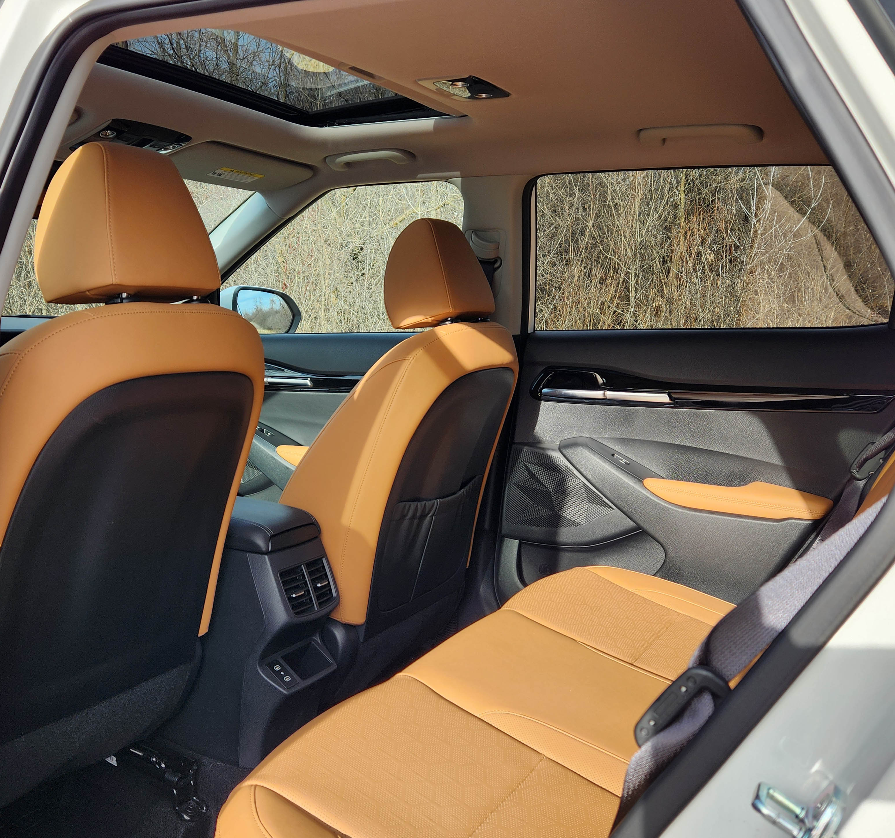 Now the tested SX Turbo version comes with 20 more horsepower, its efficient 1.6-liter I4 turbo pounding out 195 horses with an identical torque rating. Last time I was also wowed by the bright electric mustard paint job with black roof, but even in bright Snow Pearl White ($395 extra) this 2024 model looks more upscale than its pricing would indicate.
