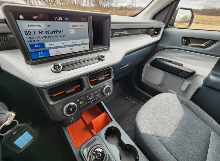 One AWOL item? A wireless charger. Also note the Maverick is still started with a key, a switchblade style that flips open from the key fob. Old-school, but effective and again, a cost saver.