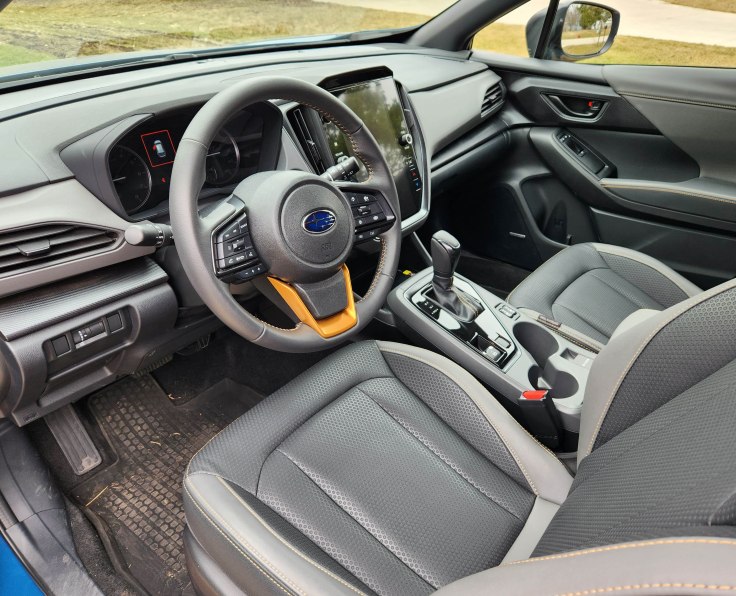 Wilderness spiffs its exterior with anodized copper-finished accents on its unique front and rear bumpers, plus on the Crosstrek badge in the black cladding on each side, and on the brackets holding the two roof rails. It’s a difference like sporting brightly colored shoe laces, or not, and it works.