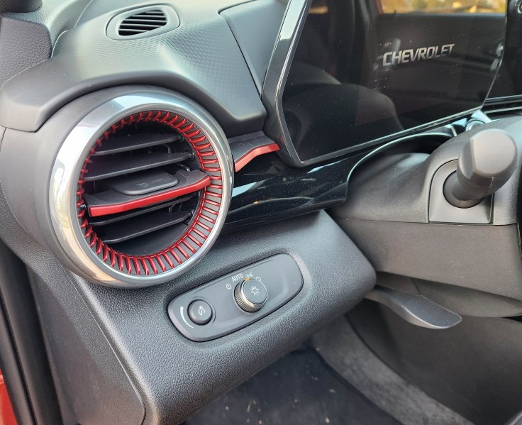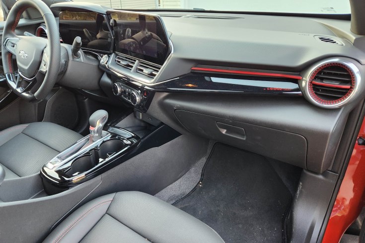 Chevy also drops an 11-inch info screen into the 2RS model, while an 8-incher is standard at the lower levels. It’s easy to adjust and see and not as glare prone as last week’s equally large Subaru Crosstrek’s screen.