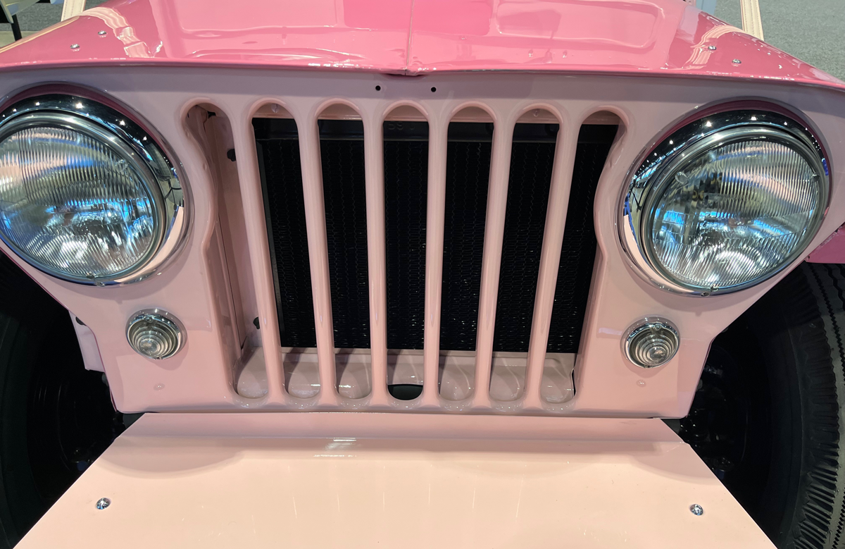 It all began at a resort in Acapulco named the Las Brisas, featuring luxury rooms built into the hillside but without elevators. So they needed to get the guests up the winding roads to their room and utilized up to 50 of the DJ-3A Jeeps (flat fender Jeeps) like this week’s spot that I saw at the 2024 Chicago Auto Show. These special order Jeeps were mostly painted Tropical Rose Pink and led to the creation of the “Surrey” for Domestic use, named the “Gala” for export as rental Jeeps and powered by the Go Devil engine, 60 hp & 105 ft./lbs. torque mated to a 3-speed manual transmission.