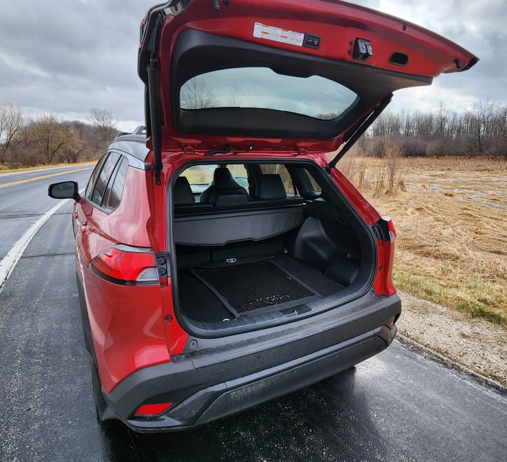 Handling resembles that of a Corolla sedan, light and easy, a low-stress comfy feel that is somewhat quicker than a few other compact crossovers. Ride too is mostly pleasant on pavement that is a reasonable facsimile of a road. Our crumbling Midwest side streets and heavily traveled byways can create what I call a chattery ride, not unpleasant, but with enough jiggle to get one’s attention.