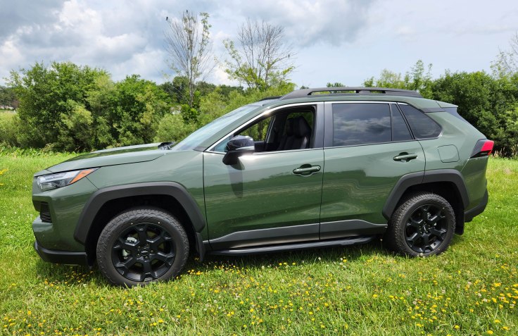 Oddly the tester added running boards, a $620 option that is totally unneeded on any RAV4. In fact, they sort of get in the way when climbing in and out.